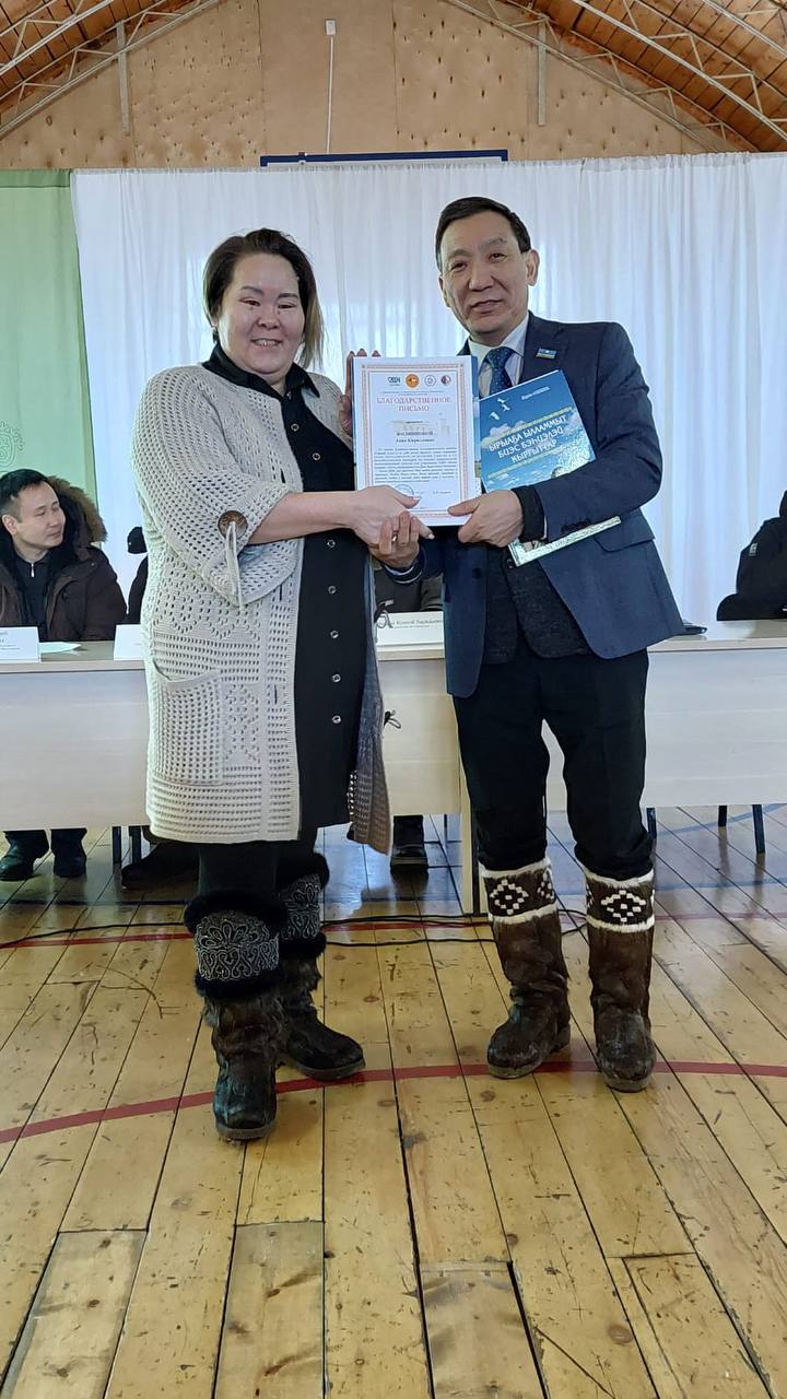 Афанасий Ноев вручил благодарственные письма активисткам Марии Яковлевой, Анне Филипповой, Лидии Павловой, Анне Дмитриевой и Надежде Федоровой, принявшим активное участие в акции «Илии сылааһа» (Тепло рук) по пошиву одежды и дополнительного обмундирования для военнослужащих-участников СВО.