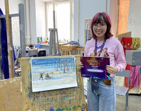 Юлиана Петрова, занявшая первое место в возрастной категории 18-35 лет, представила Усть-Алданский район. Она рассказала, что в будущем видит себя профессиональным художником. «Рисованием занимаюсь с детства, в художественную школу начала ходить с 6 класса», – поделилась победительница. Отметим, что обе девушки являются студентками Якутского художественного училища им. П. П. Романова.