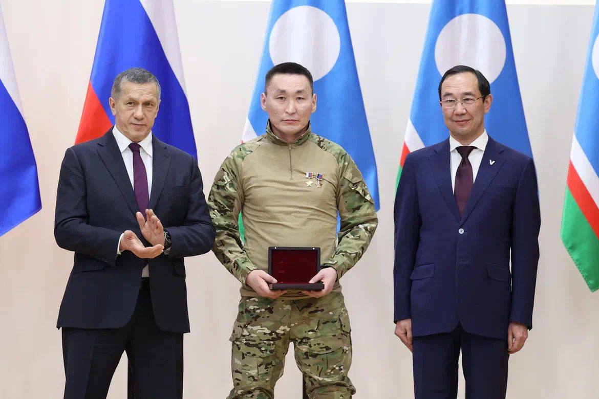 В Якутске Заместитель Председателя Правительства РФ – Полномочный представитель Президента Российской Федерации в ДФО Юрий Трутнев вручил государственные награды 18 добровольцам отряда «Боотур» и трём военнослужащим из Республики Саха (Якутия), принимавшим участие в Специальной военной операции. В торжественной церемонии принял участие Глава Якутии Айсен Николаев.