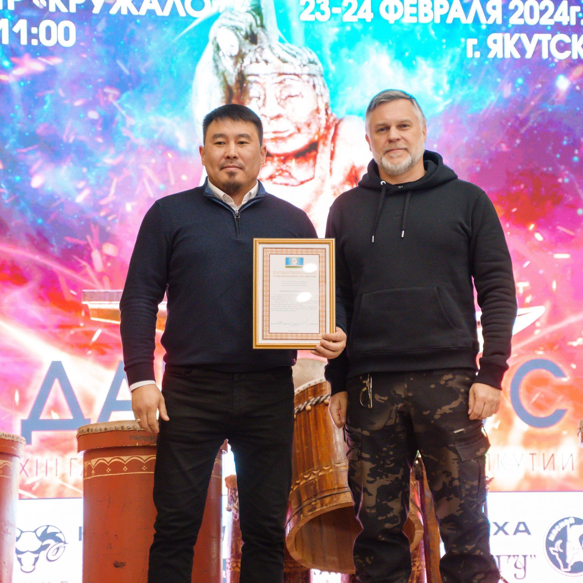 Кроме того, организаторы выставки вручили почетный «Оскар» Сарыалу Билюкину, широко известному за пределами Якутии кузнецу и одному из идейных вдохновителей выставки и автору эскиза статуэтки.