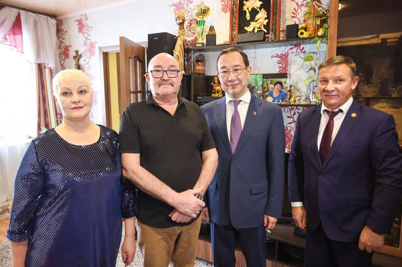 Глава Якутии Айсен Николаев сегодня в ходе рабочей поездки в Алданском районе посетил в п. Нижний Куранах Василия Алексеевича Юргина - отца Героя Российской Федерации майора Игоря Юргина.
