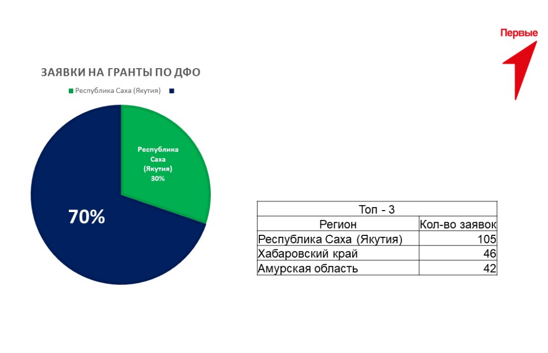 «4 марта Общероссийское общественно-государственное движение детей и молодежи «Движение Первых» завершило приём заявок на грантовый конкурс. От Республики Саха (Якутия) подано 105 заявок. Якутия стала абсолютным лидером по числу поданных заявок в Дальневосточном федеральном округе. У авторов интересных проектов и полезных инициатив появился уникальный шанс найти грантовую поддержку», – сказала Ольга Балабкина.