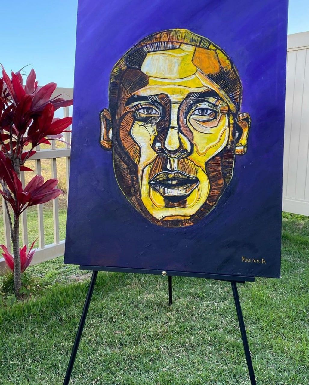 Марика рассказала, что написала картину «Кобе» в Лос-Анжелесе, и ее доставка из США через Гавайи и Майами - это отдельная история.