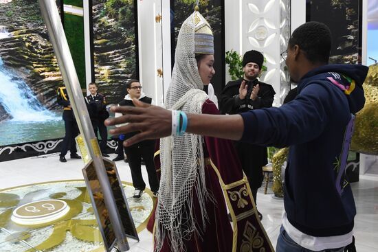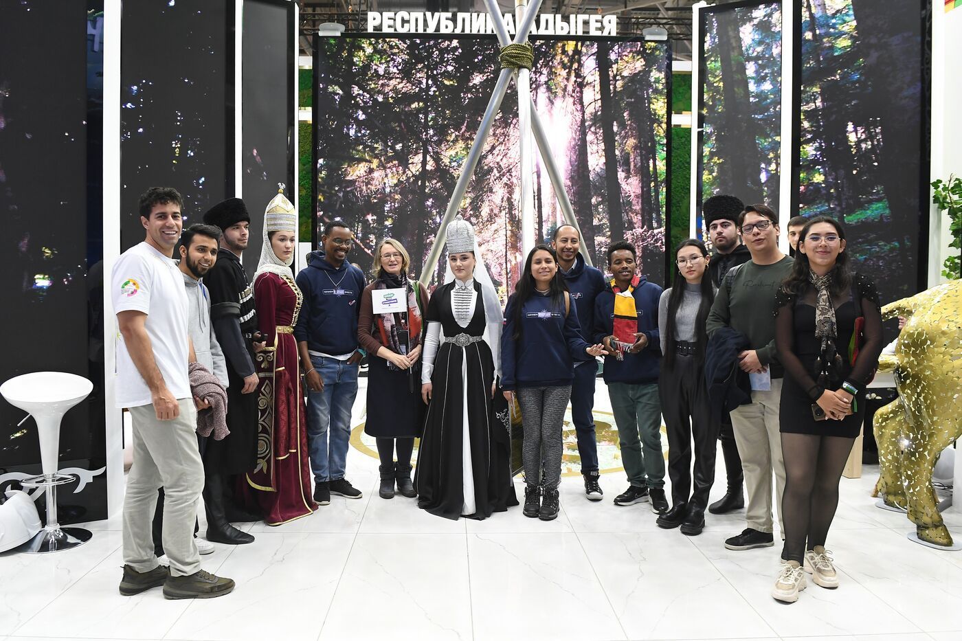 Заместитель генерального директора АНО «Дирекция Выставки Достижений "Россия"» Анастасия Звягина показала гостям стенды регионов в Павильоне № 75. «Вы уже побывали на грандиозном событии — Всемирном фестивале молодежи в «Сириусе», а также в регионах нашей большой страны. Уверена, что вы уже сами убедились в том, что Россия очень гостеприимная, дружная и дружелюбная. В нашей стране столетиями в мире и согласии живут люди разных национальностей и разной веры. Это многообразие их культур, языков, обычаев не разделяет, а, напротив, объединяет Россию», — сказала Анастасия Звягина.