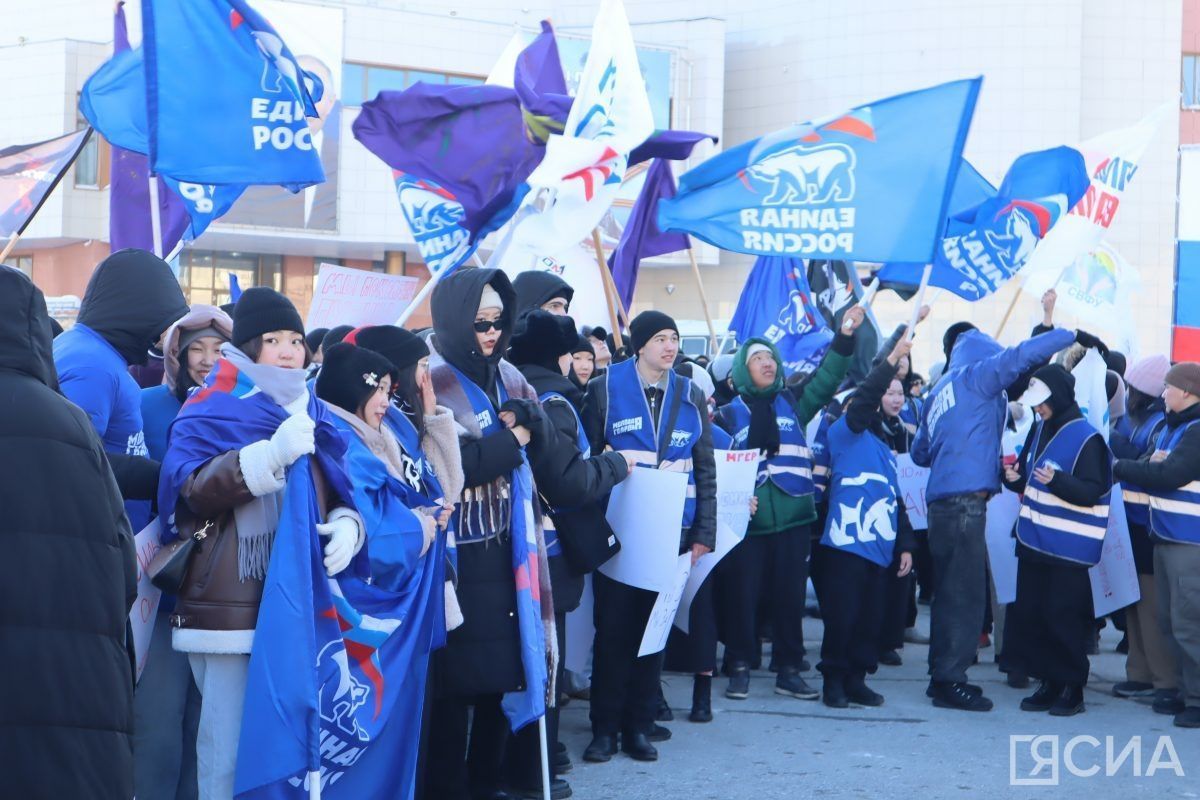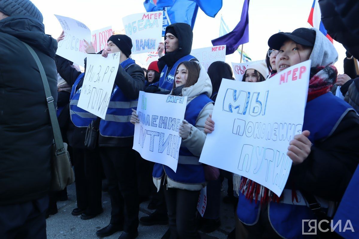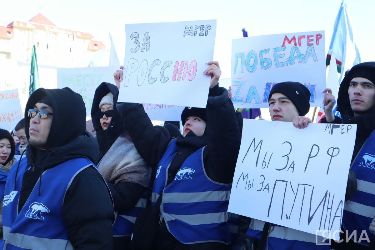 В понедельник на площади Орджоникидзе Якутска молодежь организовала акцию-митинг в поддержку президента России Владимира Путина и в честь десятилетия воссоединения Крыма с Россией. В мероприятии принял участие председатель правительства Якутии Кирилл Бычков.