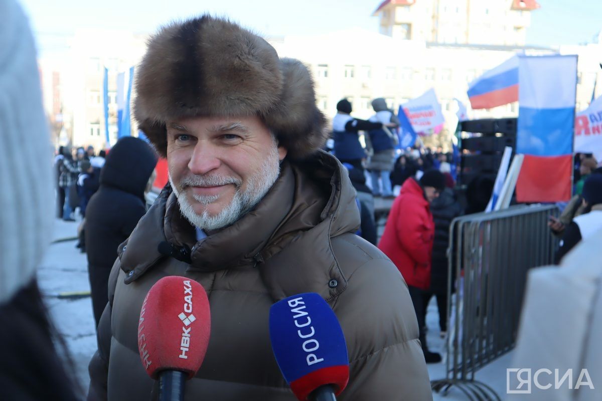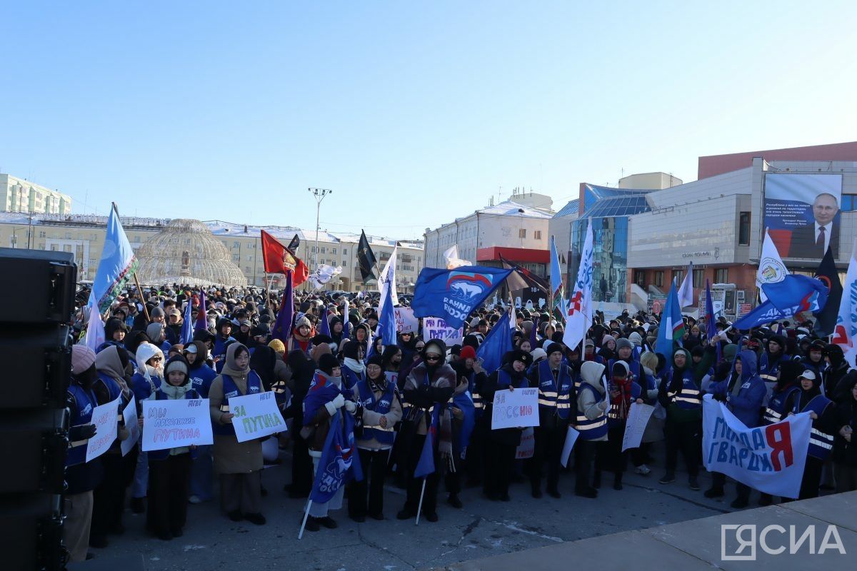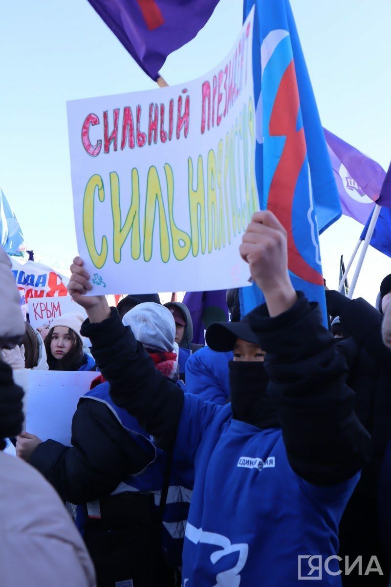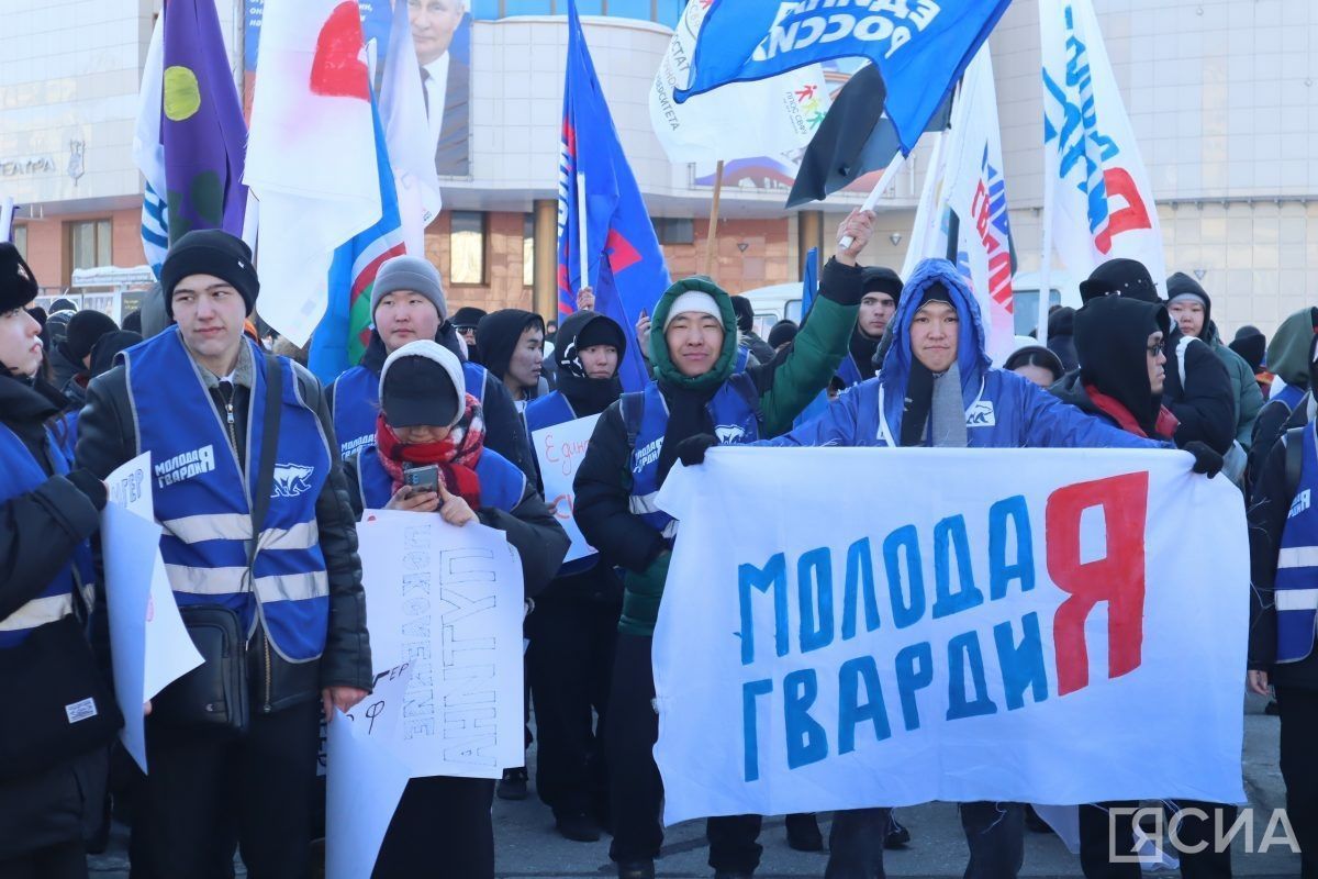 В понедельник на площади Орджоникидзе Якутска молодежь организовала акцию-митинг в поддержку президента России Владимира Путина и в честь десятилетия воссоединения Крыма с Россией. В мероприятии принял участие председатель правительства Якутии Кирилл Бычков.