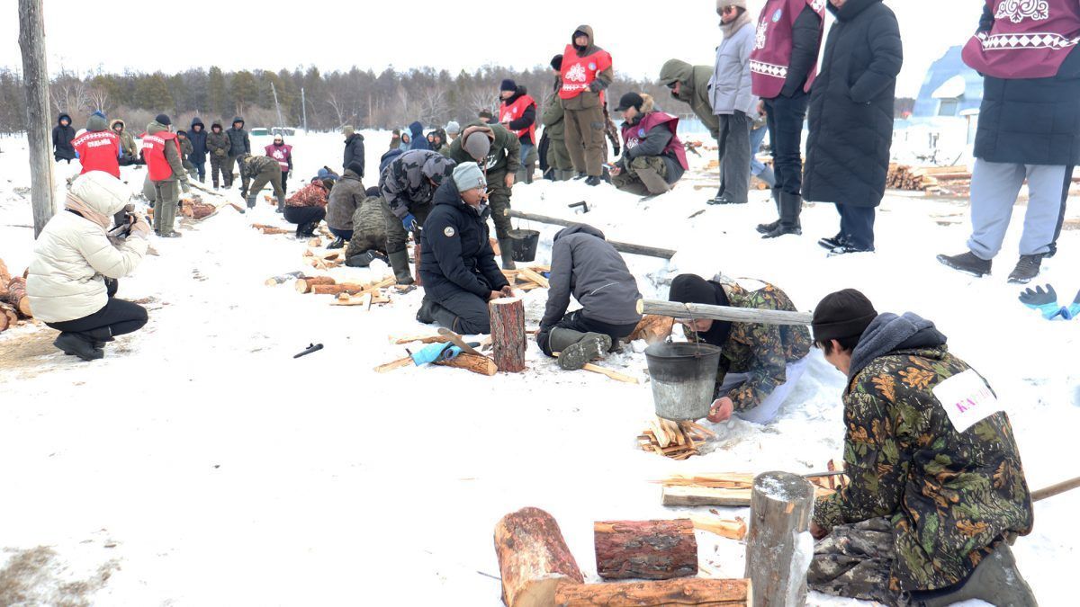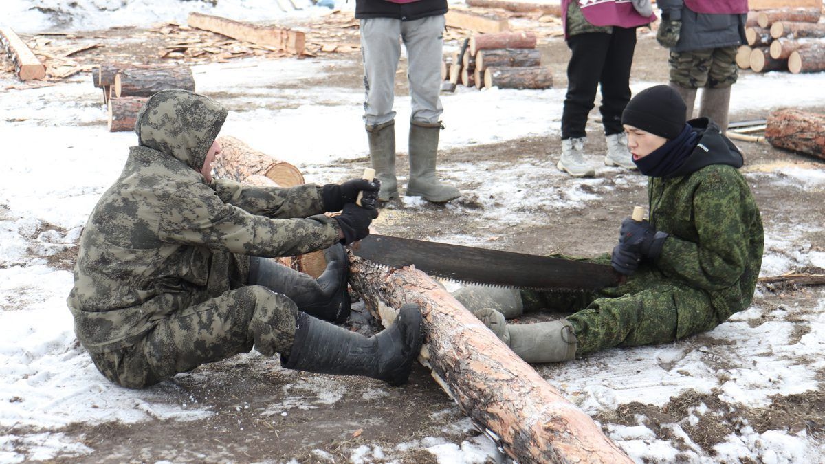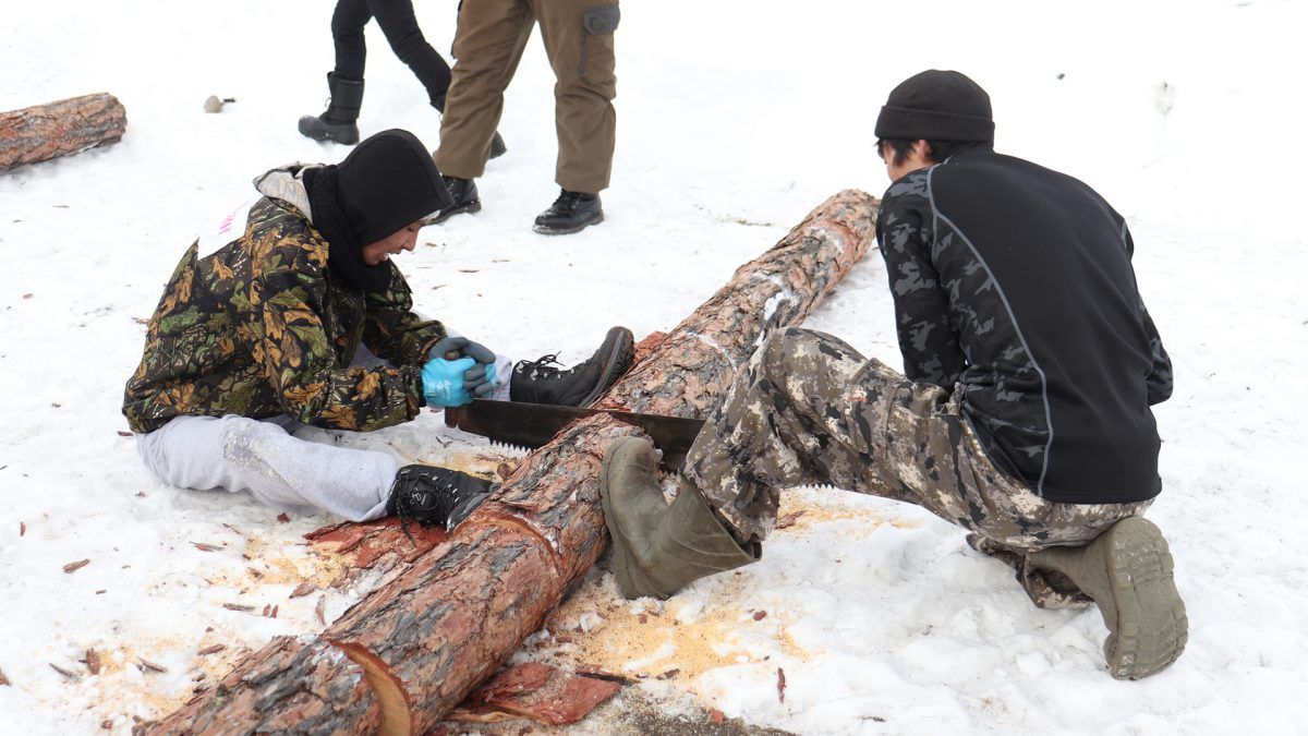 Так, жюри определяли лучших в таких состязаниях как оттёска бревна, распил бревна, залезание на столб, заготовка дров, прорубание проруби, приготовление чая на костре и гонка на лыжах.