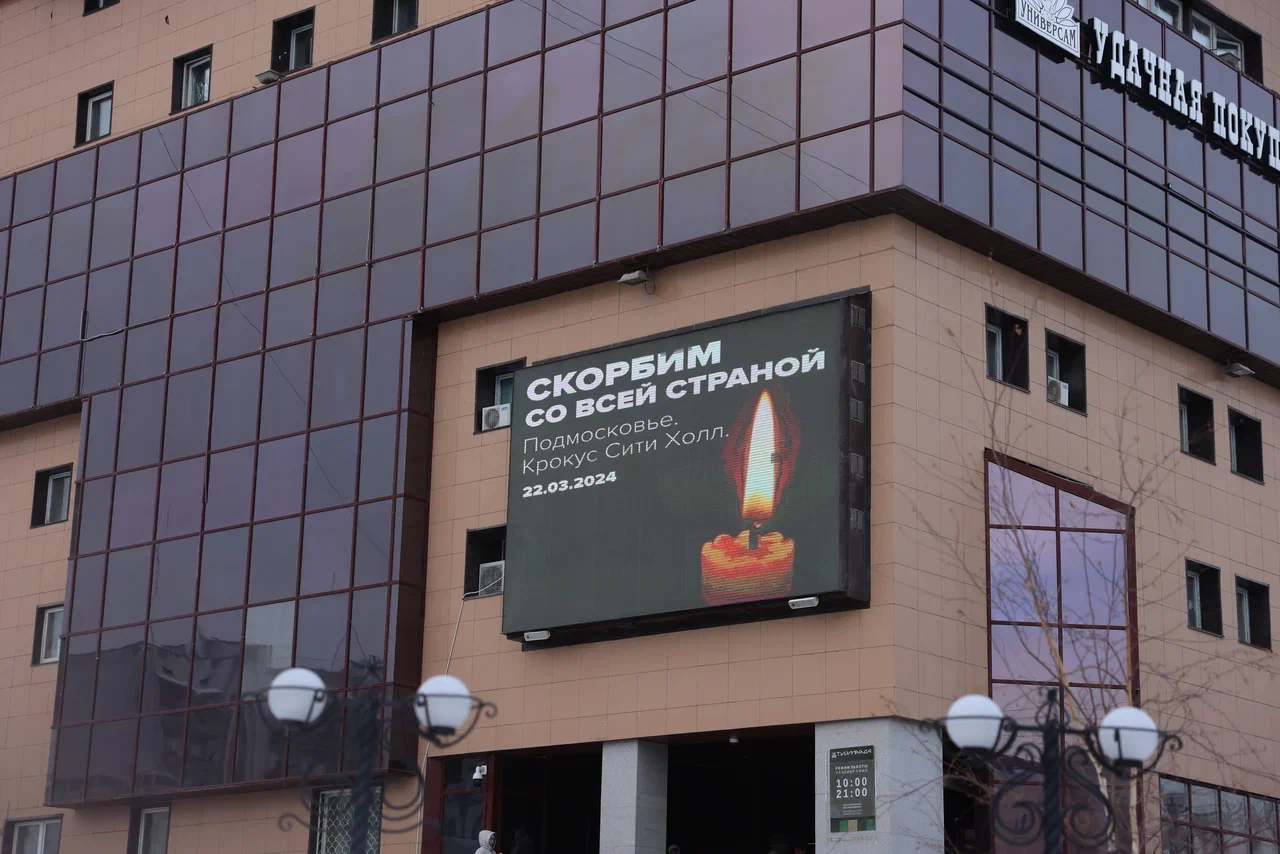 На площади Победы у плиты города-героя Москва организован мемориал пострадавшим от теракта в "Крокус Сити Холл". Сюда приходят жители Якутска почтить память погибших в теракте.