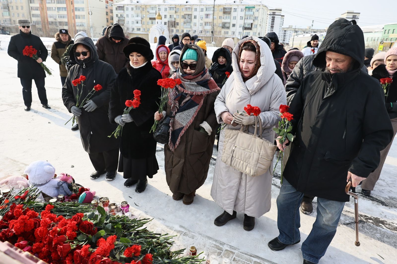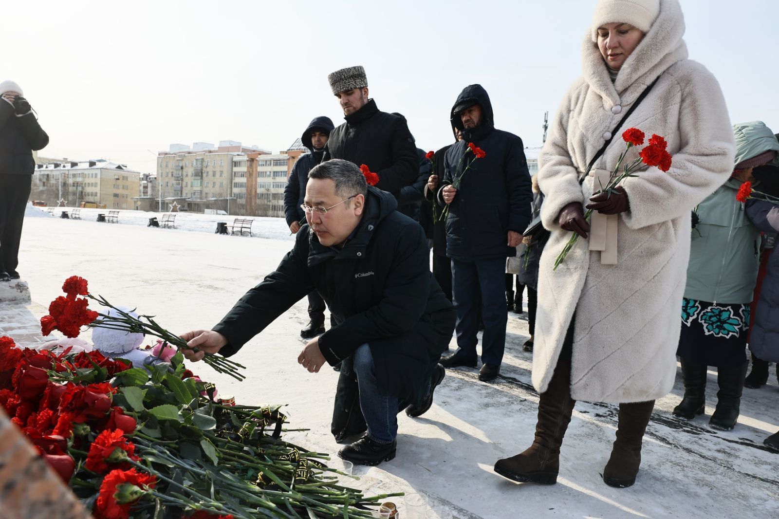С самого утра 24 марта жители Якутска несут цветы, свечи и мягкие игрушки к стеле города-героя Москвы на площади Победы в память о жертвах теракта в подмосковном концертном зале «Крокус Сити Холл». Слова соболезнования приходят со всех уголков мира, трагедия затронула сердца многих людей. Представители национальных общин республики также пришли почтить память жертв случившегося.