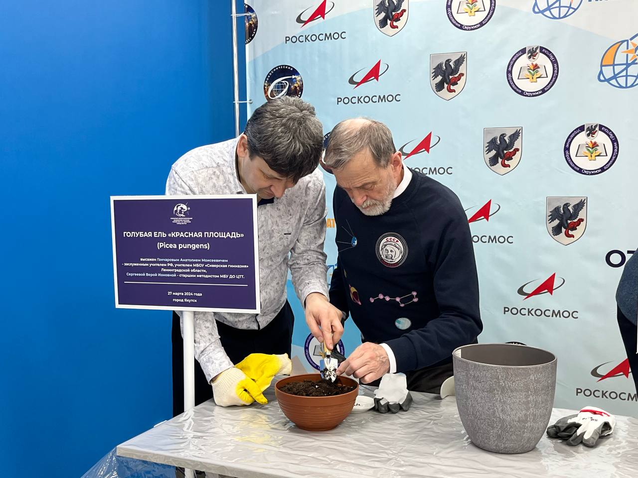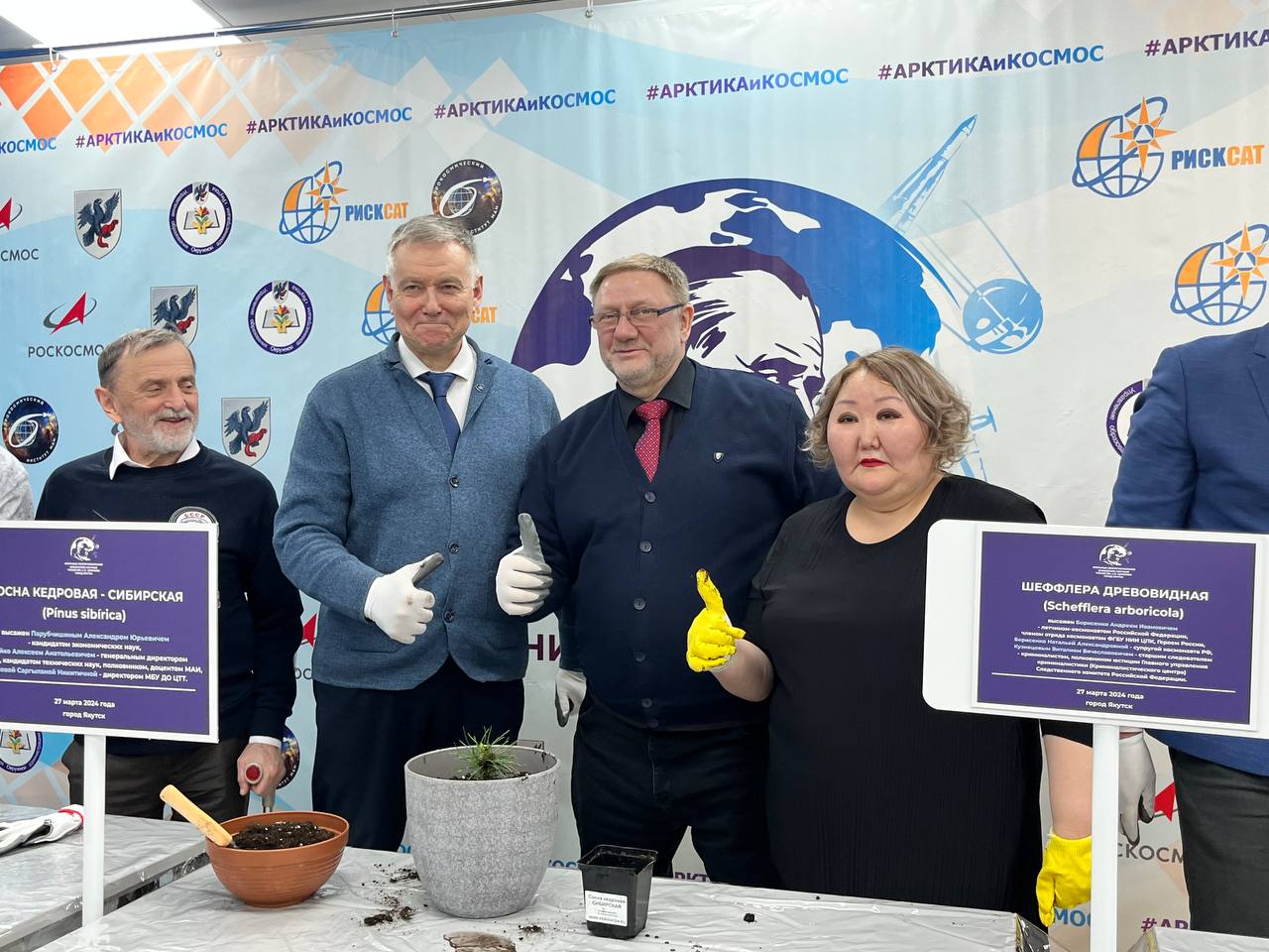 В рамках мероприятия и по традиции Центра «IT-куб» все почетные гости вместе с педагогами и директором Саргыланой Ивановой посадили саженцы деревьев. В прошлом году во время вторых чтений космонавтом-летчиком России Олегом Артемьевым был посажен фикус Бенджамина. В этот раз космическую оранжерею почетные гости пополнили сразу тремя растениями. Так, в мероприятии приняли участие супруга Андрея Борисенко Наталья Борисенко, кандидат экономических наук Александр Парубчишин, генеральный директор компании «РИСКСАТ» Алексей Кучейко, заслуженный учитель России из Ленинградской области Анатолий Гончаров.