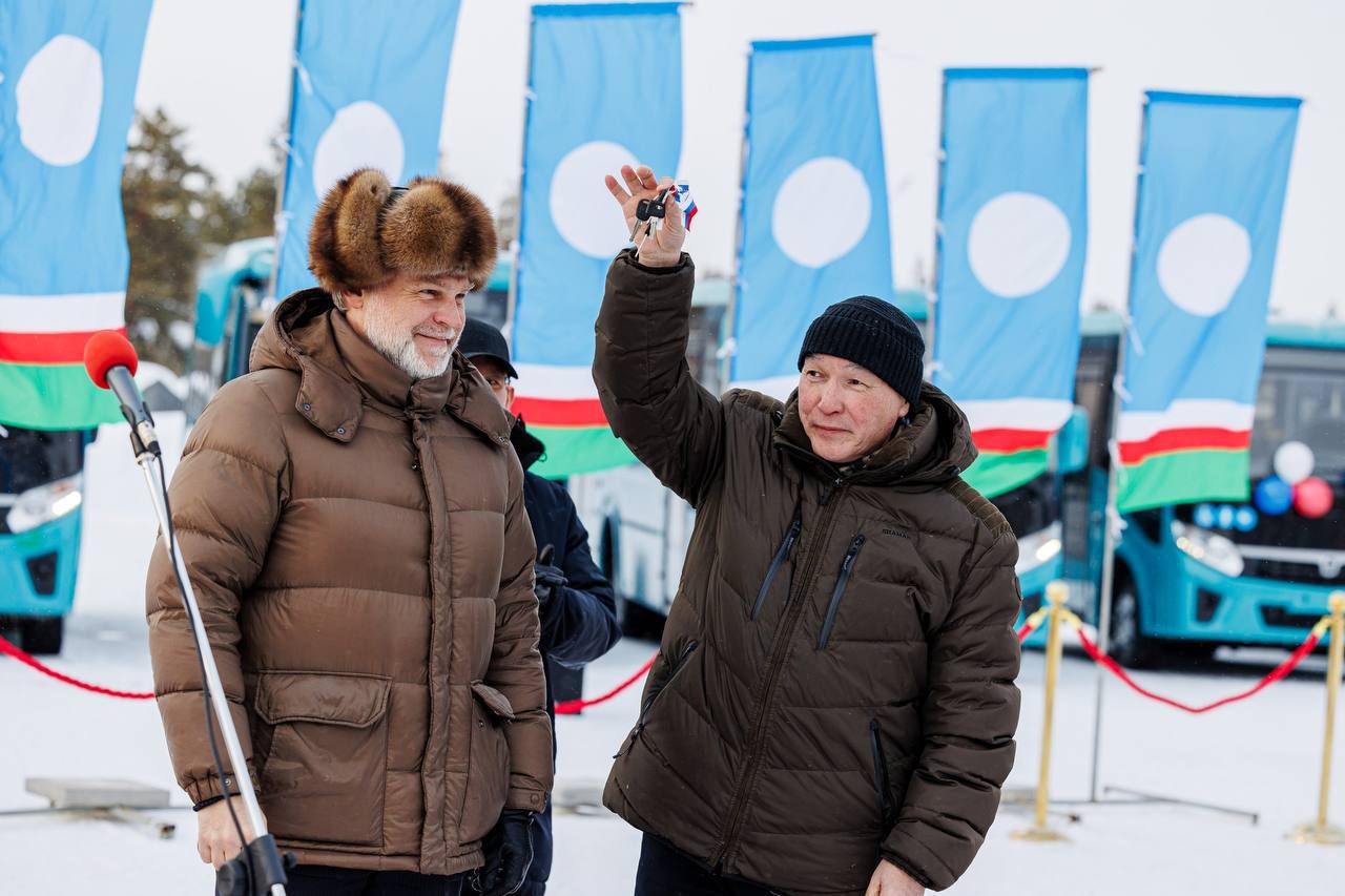 «Благодаря реализации масштабного федерального проекта под руководством Президента Владимира Путина, мы одними из первых получили автобусы на средства специального казначейского кредита.Это позволило нам направить 400 миллионов рублей на приобретение 53 автобусов, которые будут работать в 17 муниципальных районах и городских округах республики. Ранее Глава Якутии Айсен Николаев вручил ключи от 29 автобусов, сегодня я рад продолжить это радостное событие», – отметил Кирилл Бычков, вручая главам улусов республики ключи от 24 новых автобусов.