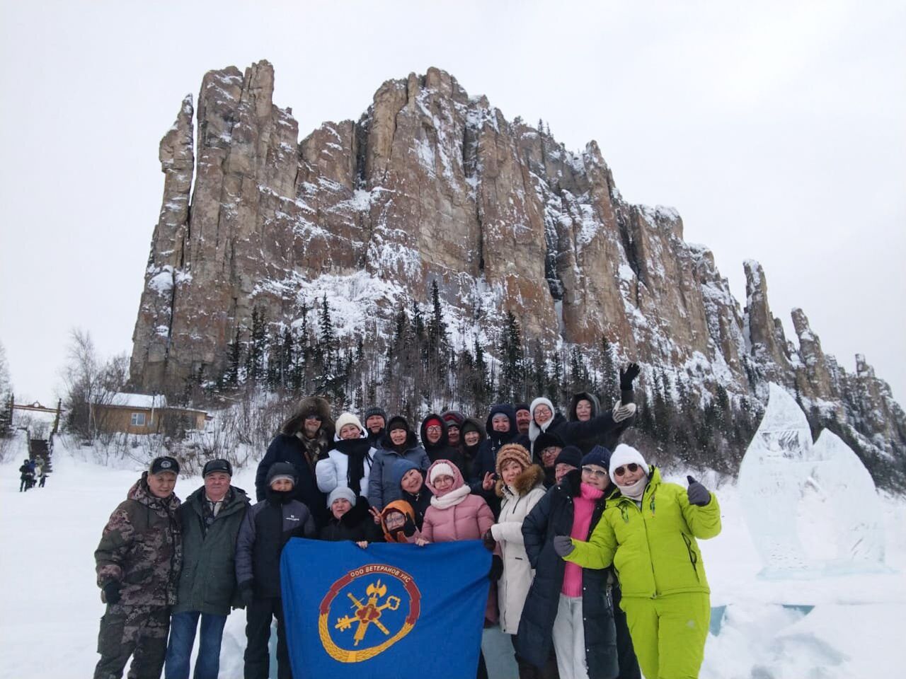 Природный парк, являющийся визитной карточкой Якутии, поразил ветеранов красотой и величием и вдохновил на небольшой подъем до места, откуда открылся взор на причудливо громоздящиеся скалы.