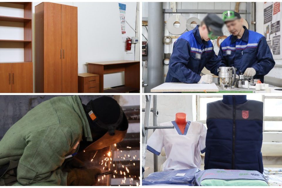В центре трудовой адаптации осуждённых в ИК-1 оборудовано три цеха: дерево- и металлообработки и швейное производство. В них трудятся около 90 человек. Просторное помещение цеха обработки дерева вмещает в себя полный цикл производства: от раскройки деталей до сборки.