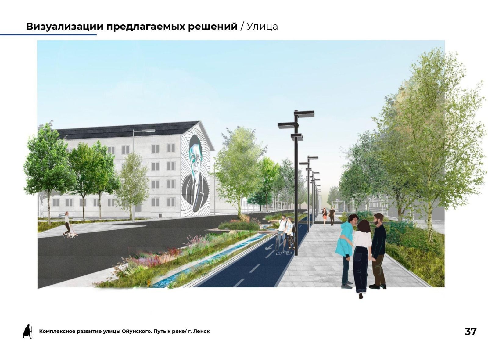 Территория проекта «Комплексное развитие ул. Ойунского «Путь к реке» (2 этап)» располагается в центральной части города в зоне жилой застройки, используется как транзитная и прогулочная улица. На участке ул. Ойунского от ул. Победы до территории школы №2 расположены 3-4-х этажные многоквартирные дома с нежилыми помещениями на первых этажах, ДК «Юность», общеобразовательная школа №2, магазин «Гастроном».