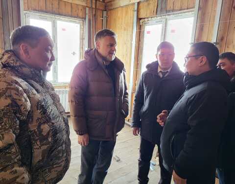 Председатель Правительства Якутии Кирилл Бычков сегодня, 8 апреля, в ходе рабочей поездки в Эвено-Бытантайский национальный район проверил ход строительства 12-ти квартирного жилого дома в с. Батагай-Алыта.