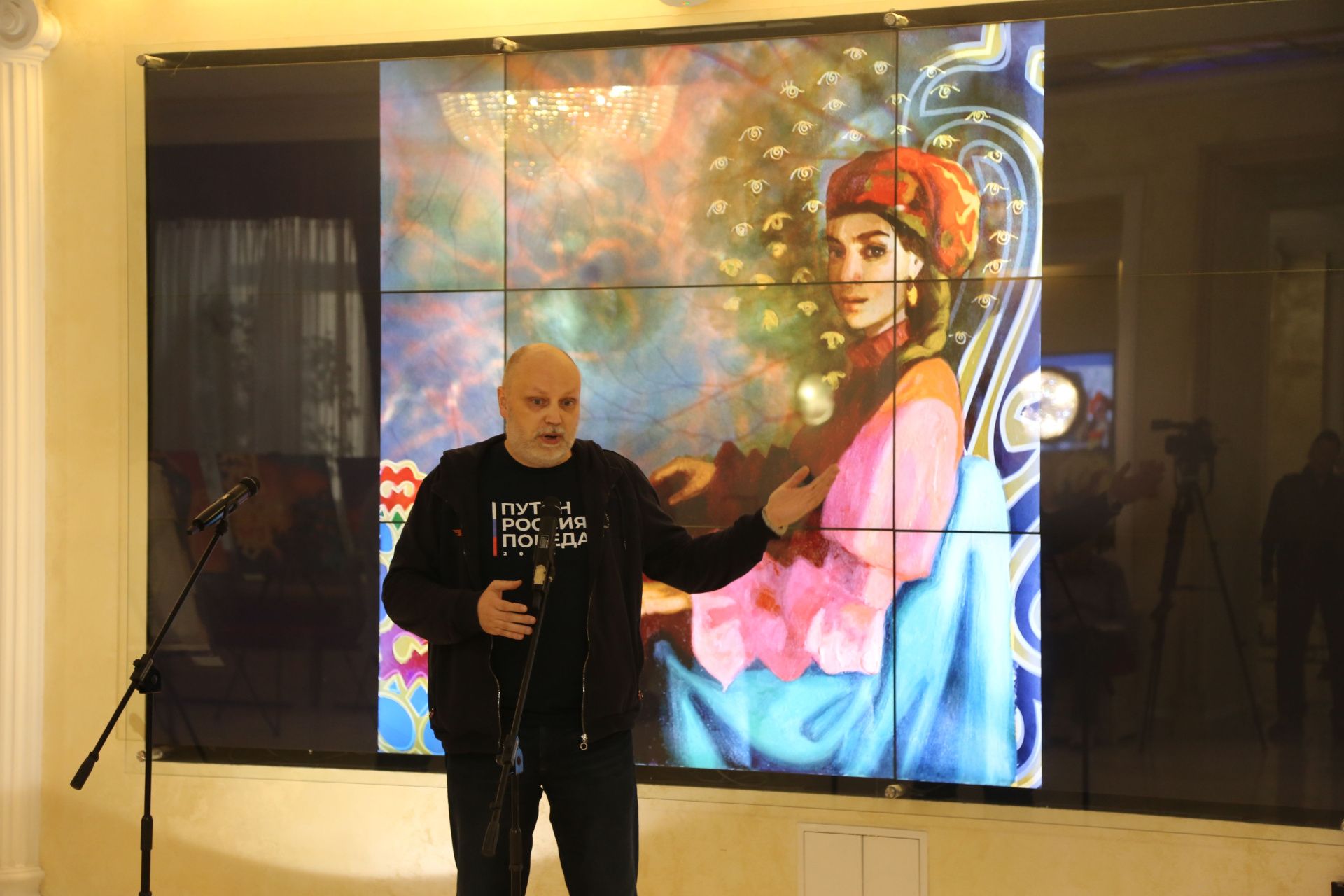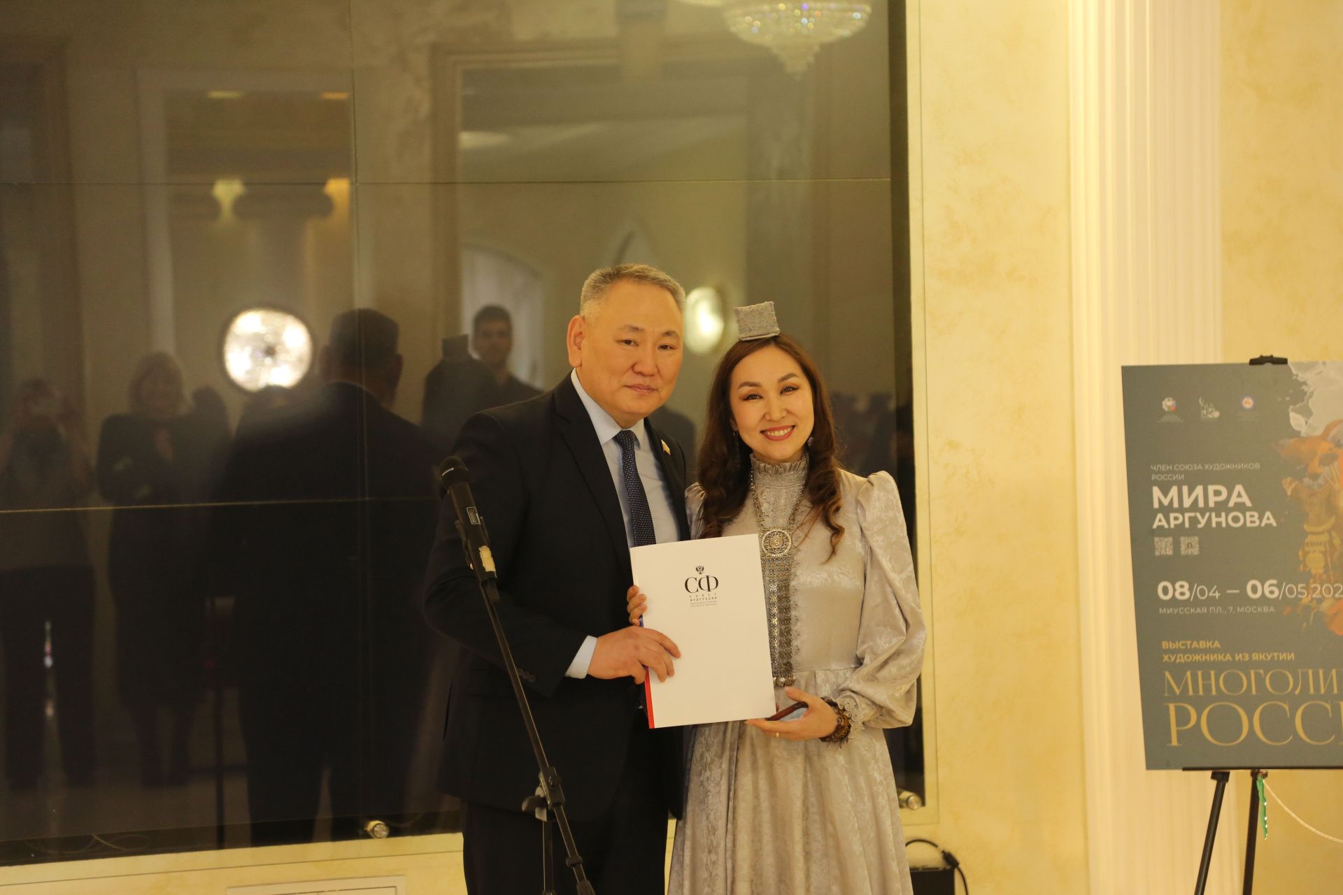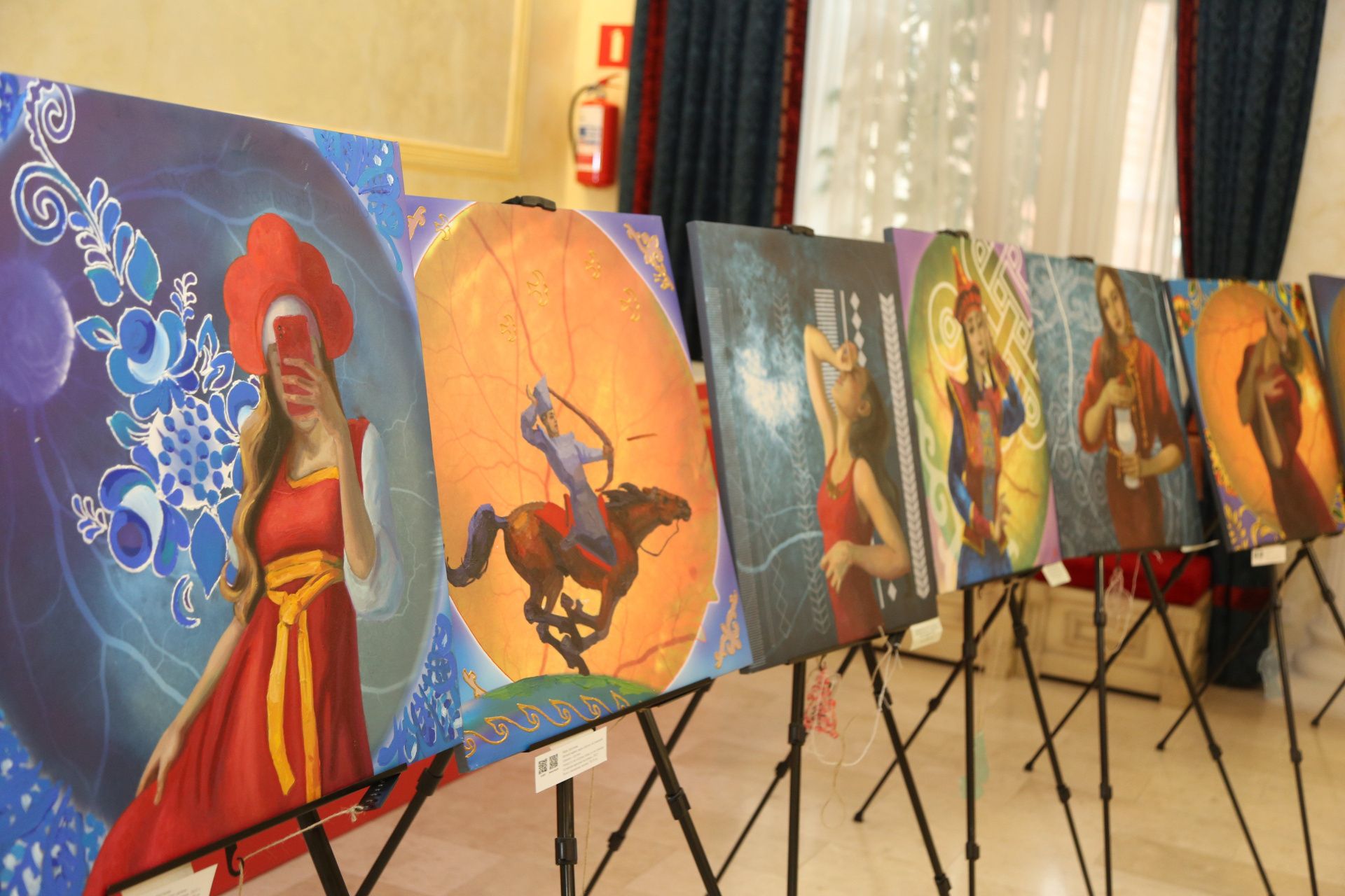«Авторское видение мира через призму национального колорита, символику, орнаменты и через женские образы — это очень интересно и встречает хороший отклик у зрителей, — отметил Сахамин Афанасьев, сенатор Российской Федерации. — При этом работы содержат в себе очень глубокий смысл, они передают всю мудрость, которая содержится в пословицах народов России, и это придает выставке дополнительное и очень содержательное философское значение».