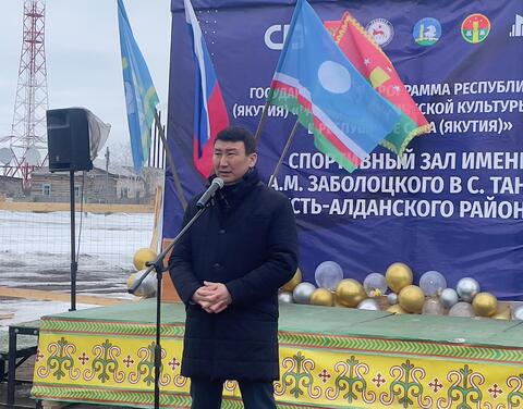 «Сегодня мы начинаем строительство спортивного зала им. Анатолия Заболоцкого, где будут созданы все условия и детям, и взрослым для занятий физической культурой и спортом. Здесь будут тренироваться и воспитанники заслуженного тренера республики Максима Аммосова. Команда волейболисток из с. Танда - одна из лучших в республике», - отметил заместитель Председателя Правительства Сергей Местников, обращаясь к участникам мероприятия.