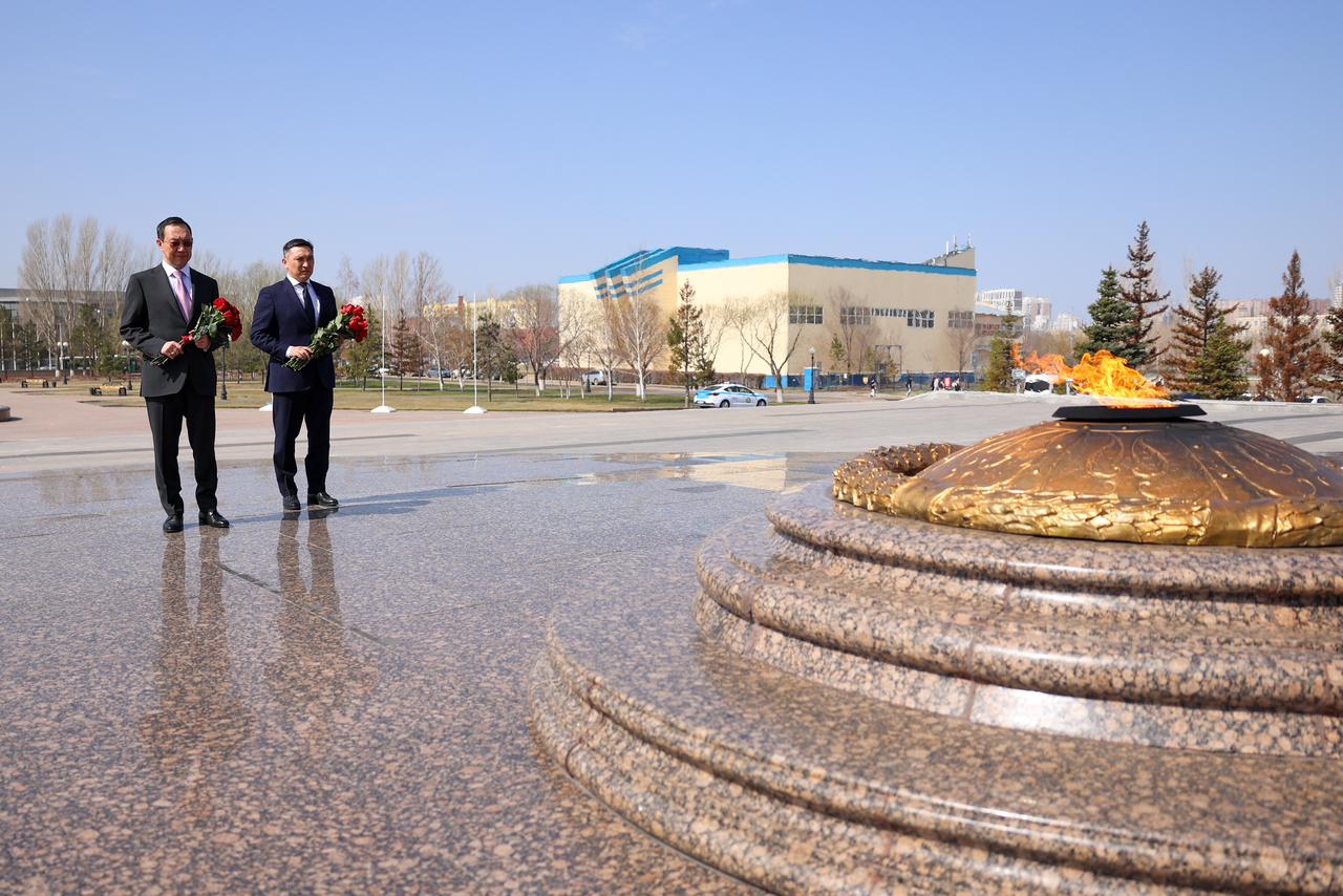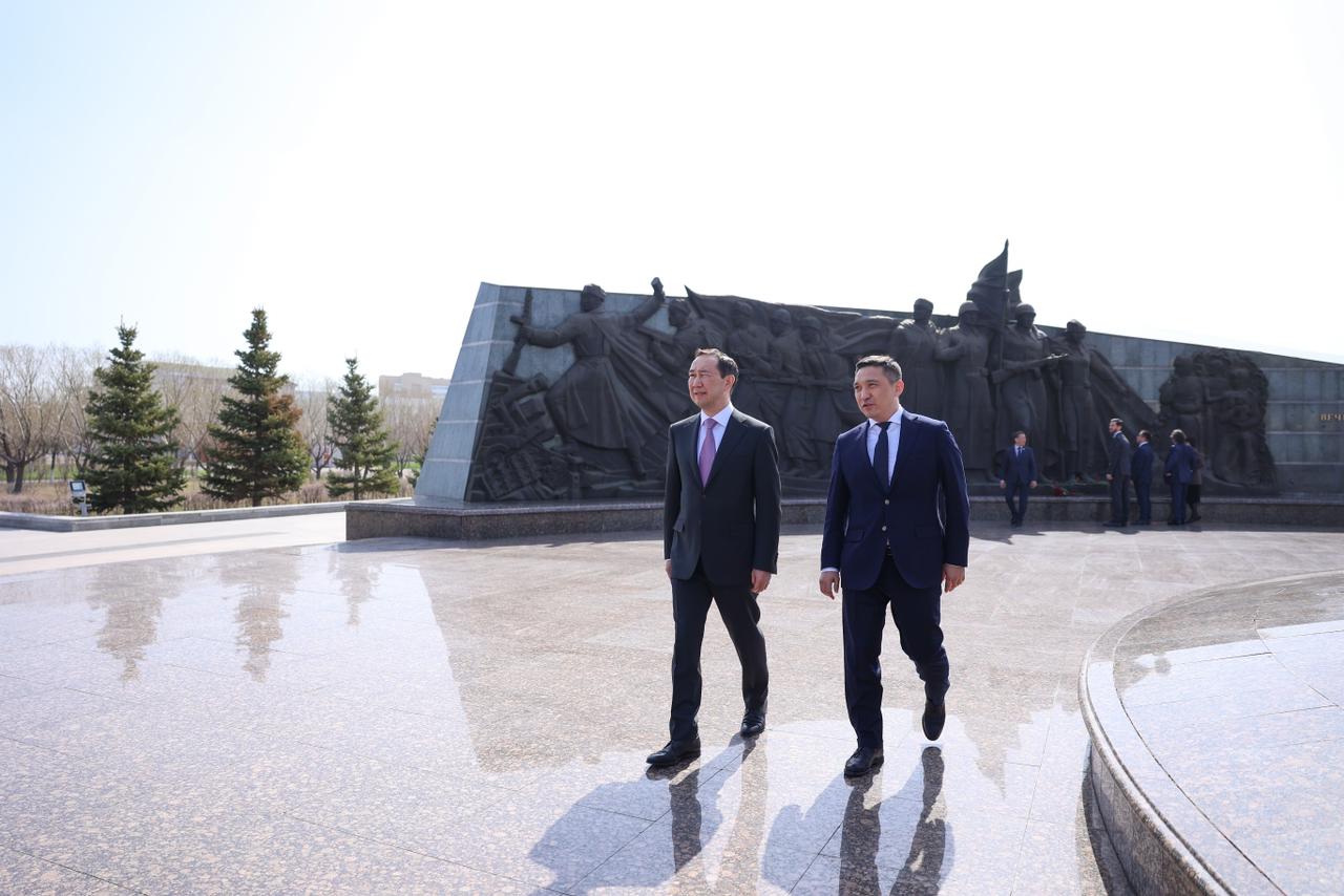 В пятницу, 19 апреля, глава Якутии Айсен Николаев и члены правительства республики возложили цветы к монументу защитникам Отечества в Астане.