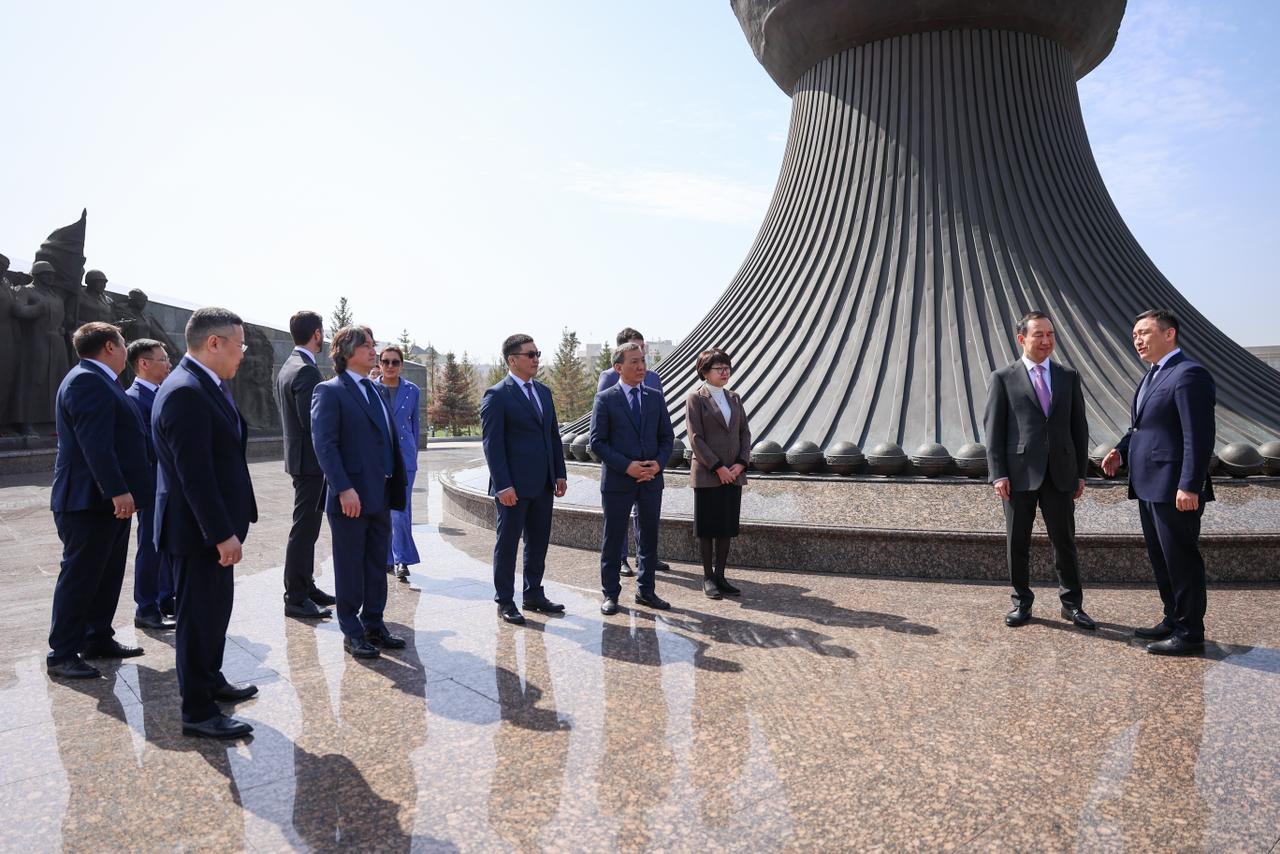 В возложении принял участие аким района Алматы города Астаны Саматулы Максат. Он рассказал главе Якутии о монументе и казахстанцах, отважно воевавших в годы Великой Отечественной войны.