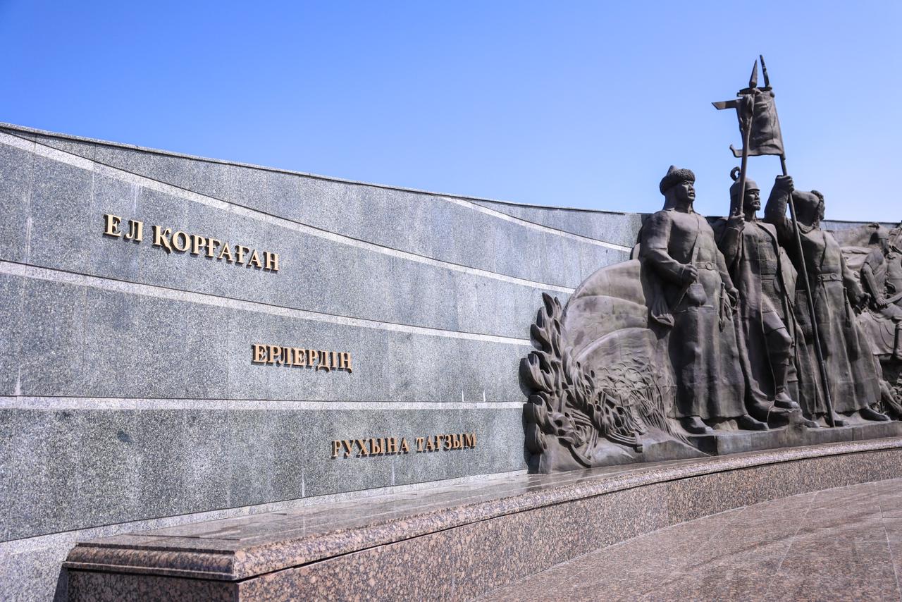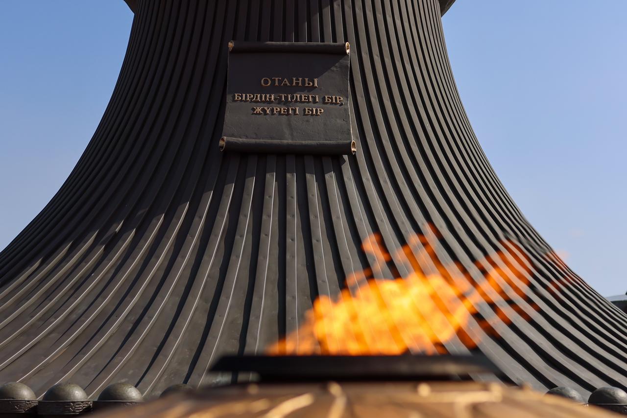 Монумент с высотой в тридцать семь с половиной метров находится на площади «Отан коргаушылар». Известно, что в годы Великой Отечественной войны на передовую было мобилизовано более 1,3 миллиона жителей Казахстана, и половина из них погибла на полях боя. Более 500 казахстанцев были награждены званием Героя Советского Союза.