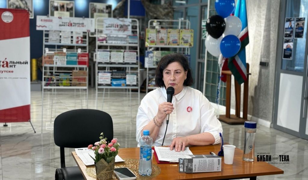 Диктаторами на площадках Национальной библиотеки Якутии выступили автор стихотворений Ирина Курилюк - Ирэн Дрозд и преподаватель филологического факультета СВФУ им. М.К. Аммосова Анастасия Алексеева.