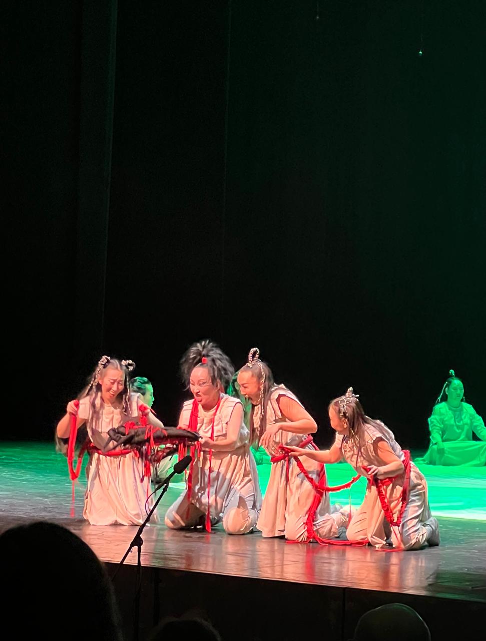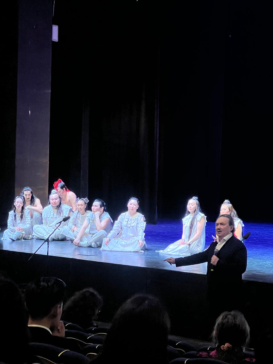 Основатель театра Андрей Борисов вышел в зрительный зал, актеры уселись тут же на авансцене, и начался не запланированный, но очень интересный профессиональный разговор, мастер-класс. Среди зрителей оказались артисты трёх театров Астаны. Но и другие зрители так же с воодушевлением и с чувством сопричастности к чему то важному и эксклюзивному внимали словам основателя театра Олонхо.