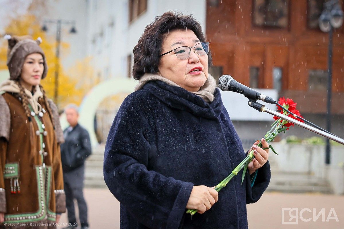 На торжественном митинге с поздравлениями выступили председатель постоянного комитета Государственного Собрания (Ил Тумэн) РС(Я) по вопросам коренных малочисленных народов Севера и делам Арктики Елена Голомарева, первый заместитель председателя Якутской городской Думы Евдокия Евсикова.