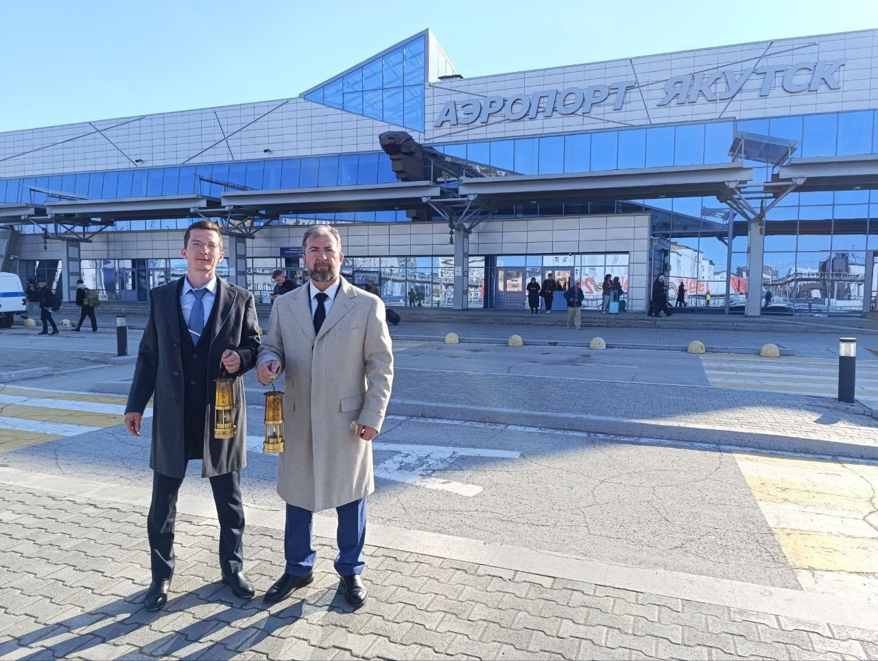 В Якутск святыню привезли в специальной лампе с соблюдением всех мер авиационной безопасности. Экипаж перед полетом проходит особую подготовку и инструктаж по обеспечению дополнительной безопасности при перевозке открытого огня.