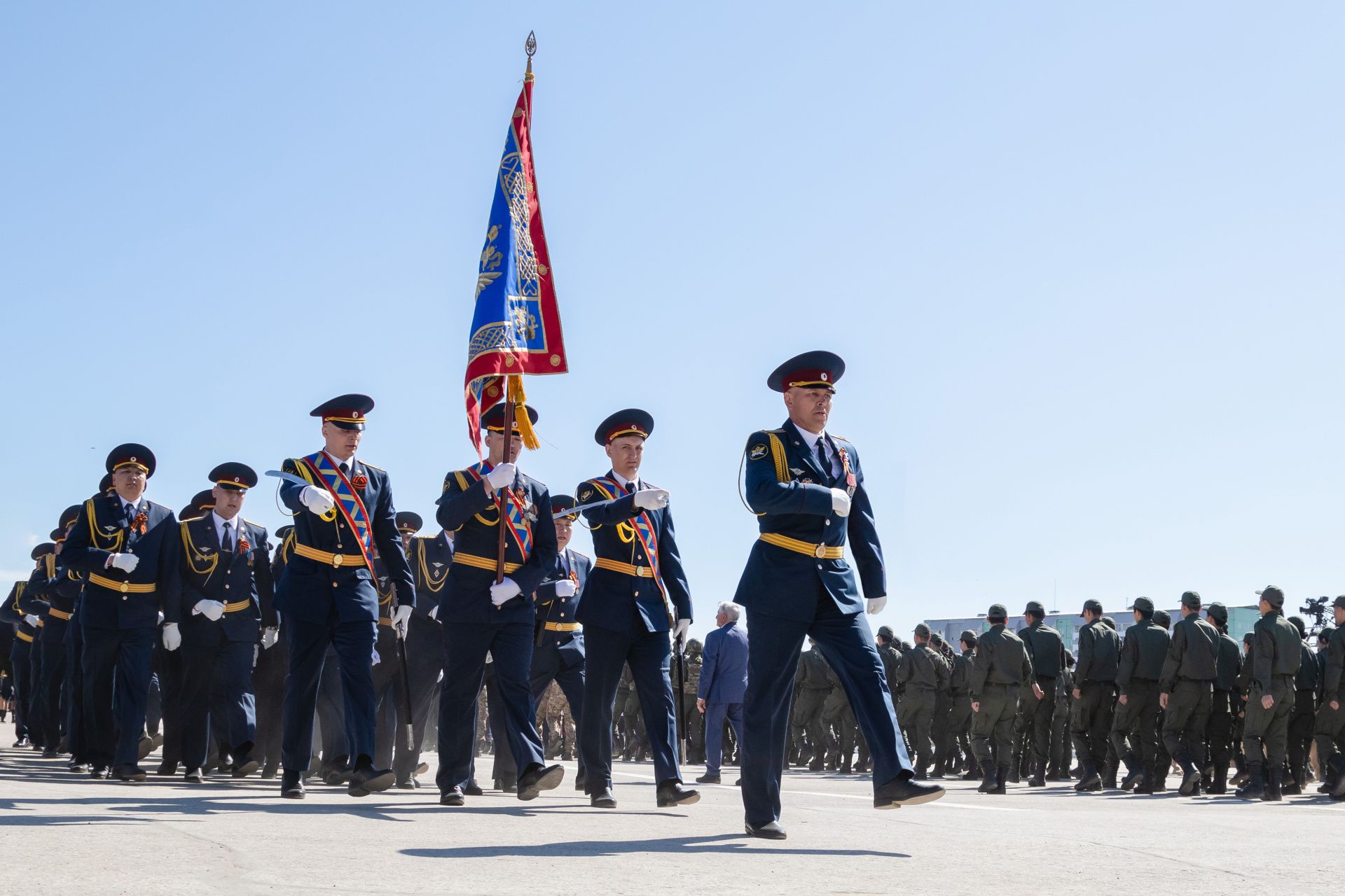 Сотрудники уголовно-исполнительной системы, военнослужащие и представители других силовых структур, а также учащиеся патриотических классов и воспитанники образовательных учреждений торжественным маршем прошли по центральной аллее площади Победы.