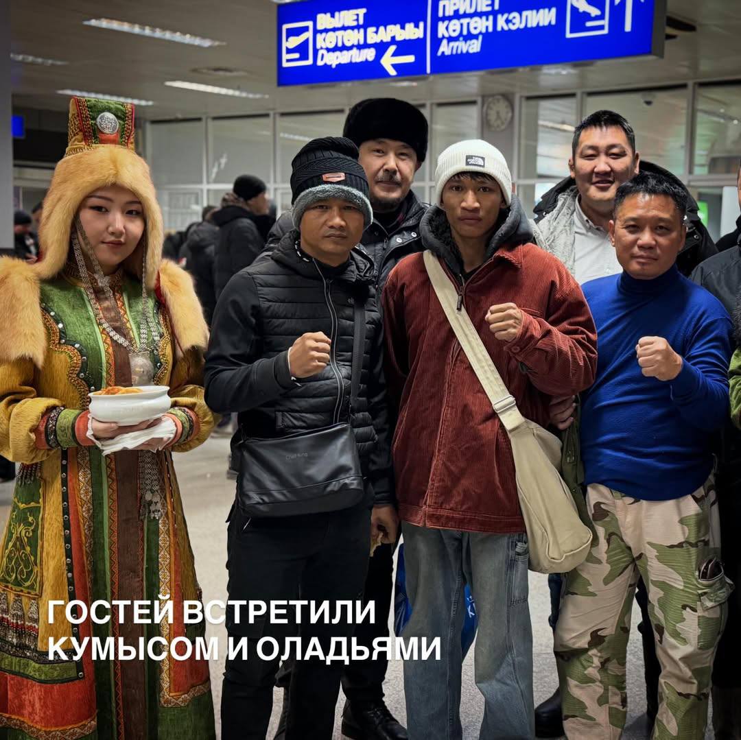 Боксера и его команду встретили в аэропорту оладьями и кумысом представители администрации города Якутска и промоутерской компании «Сахапрофбокс»