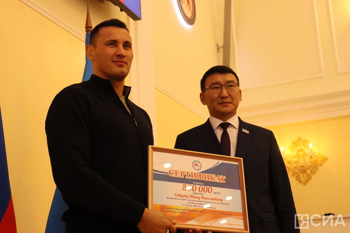 Награды в размере 500 тысяч рублей вручили и личным тренерам спортсменов — Ивану Сивцеву и Татьяне Жирковой.
