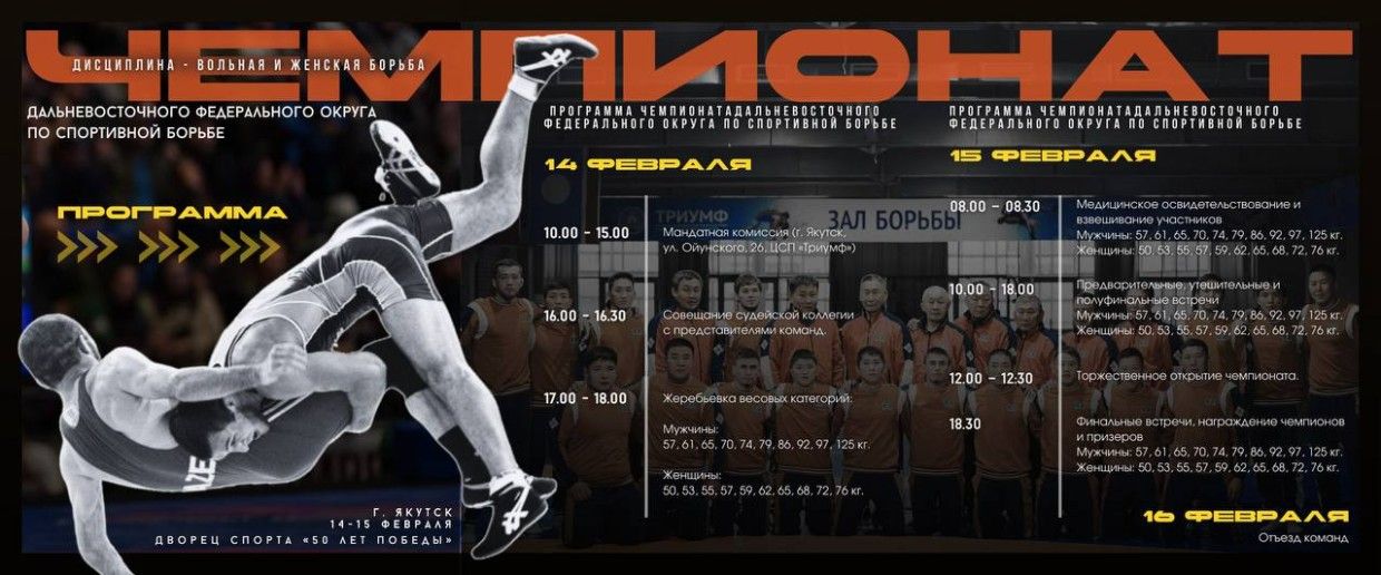 Чемпионат Дальнего Востока по вольной и женской борьбе пройдет в Якутске 15 февраля. Ожидается, что более сотни спортсменов оспорят путёвки на чемпионат России, сообщает пресс-центр ЦСП "Триумф".