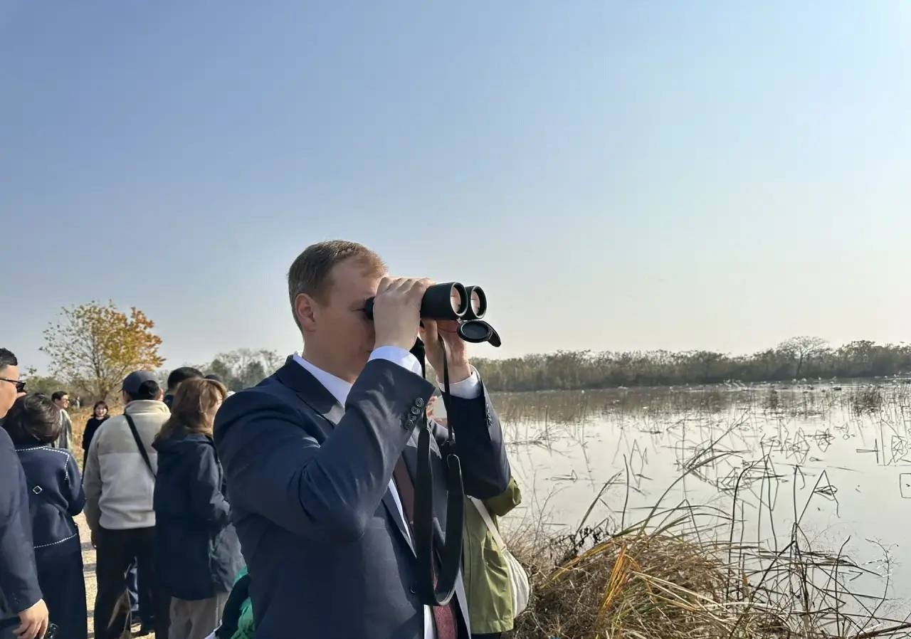 Они отправились в Информационно-просветительский центр по изучению водно-болотных угодий и перелетных птиц озера Поянху. Это одно из крупнейших пресноводных озер Китая, известное своей ролью в сохранении биоразнообразия и защите миграционных путей редких видов птиц, в том числе якутского стерха.