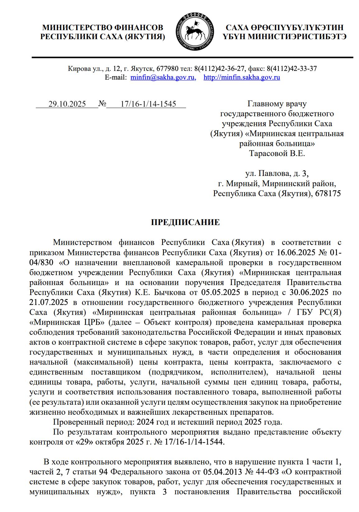 На фоне нехватки в аптеках Якутии льготных лекарств, в системе здравоохранения Якутии разразился скандал: Минфин республики обвинил Мирнинскую центральную районную больницу (главврач Тарасова Вера) в том, что та два года раздавала льготные лекарства инвалидам без проверки документов. Теперь с больницы требуют вернуть в бюджет миллионы. Разбираем, что случилось.