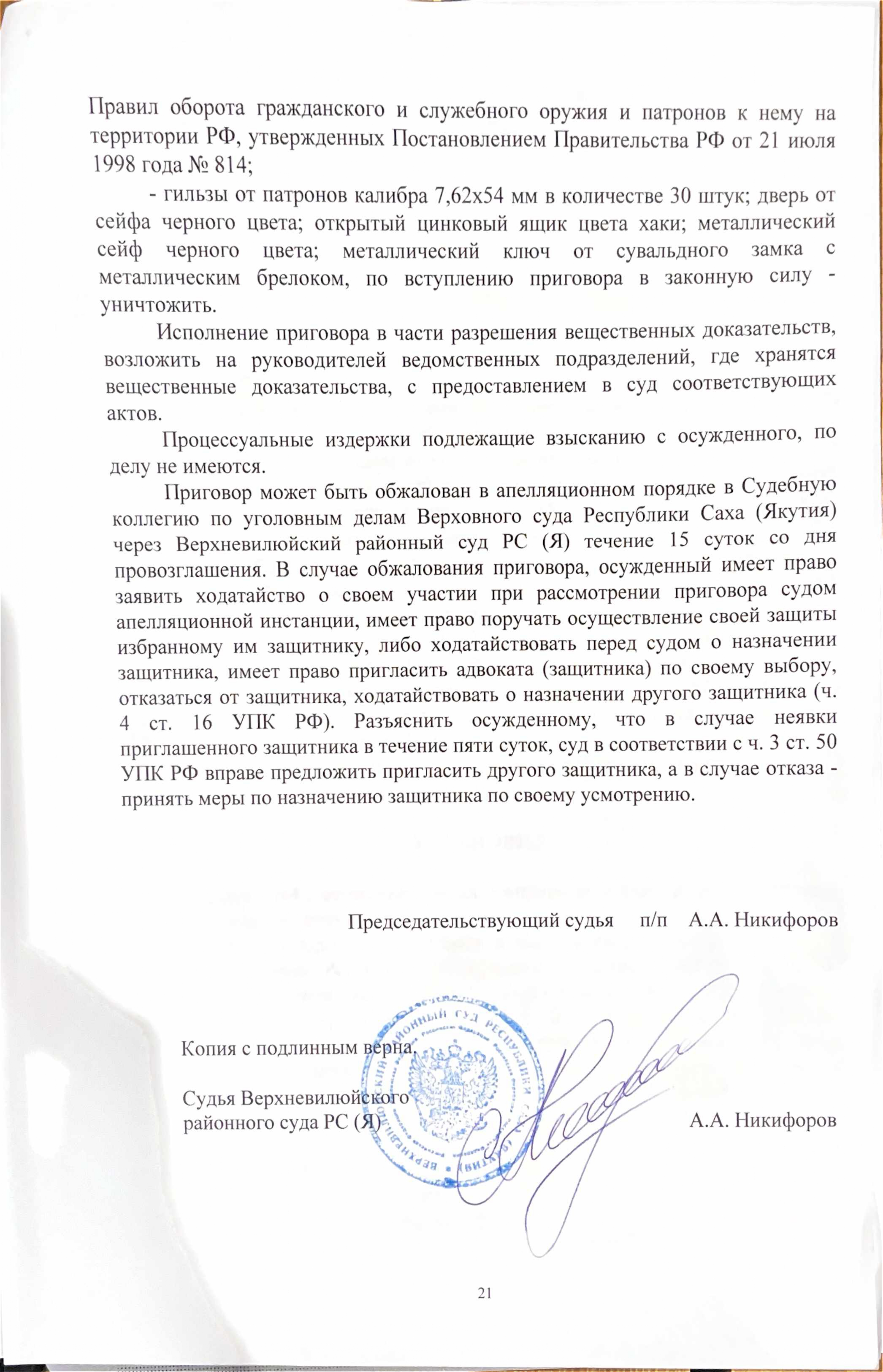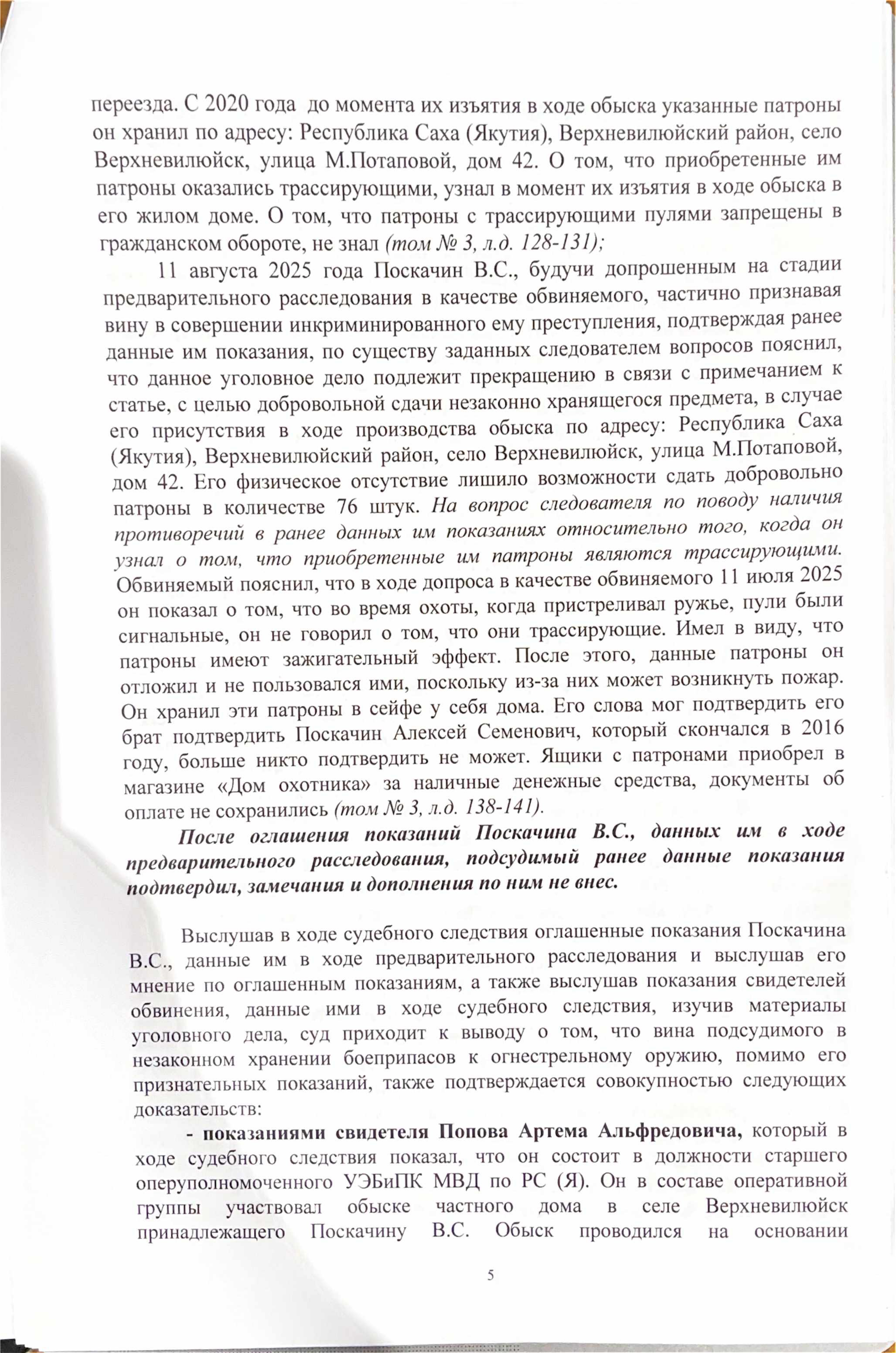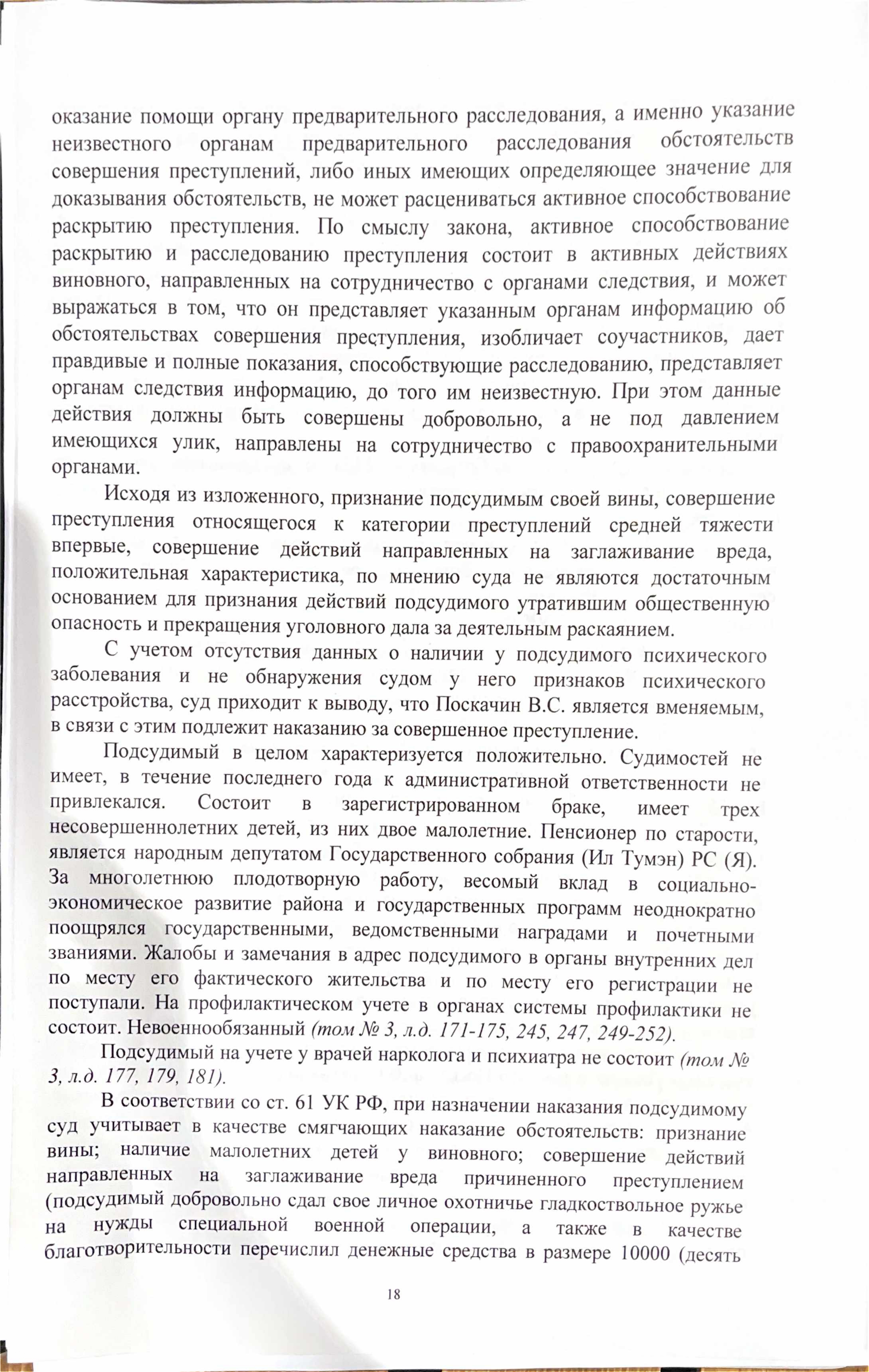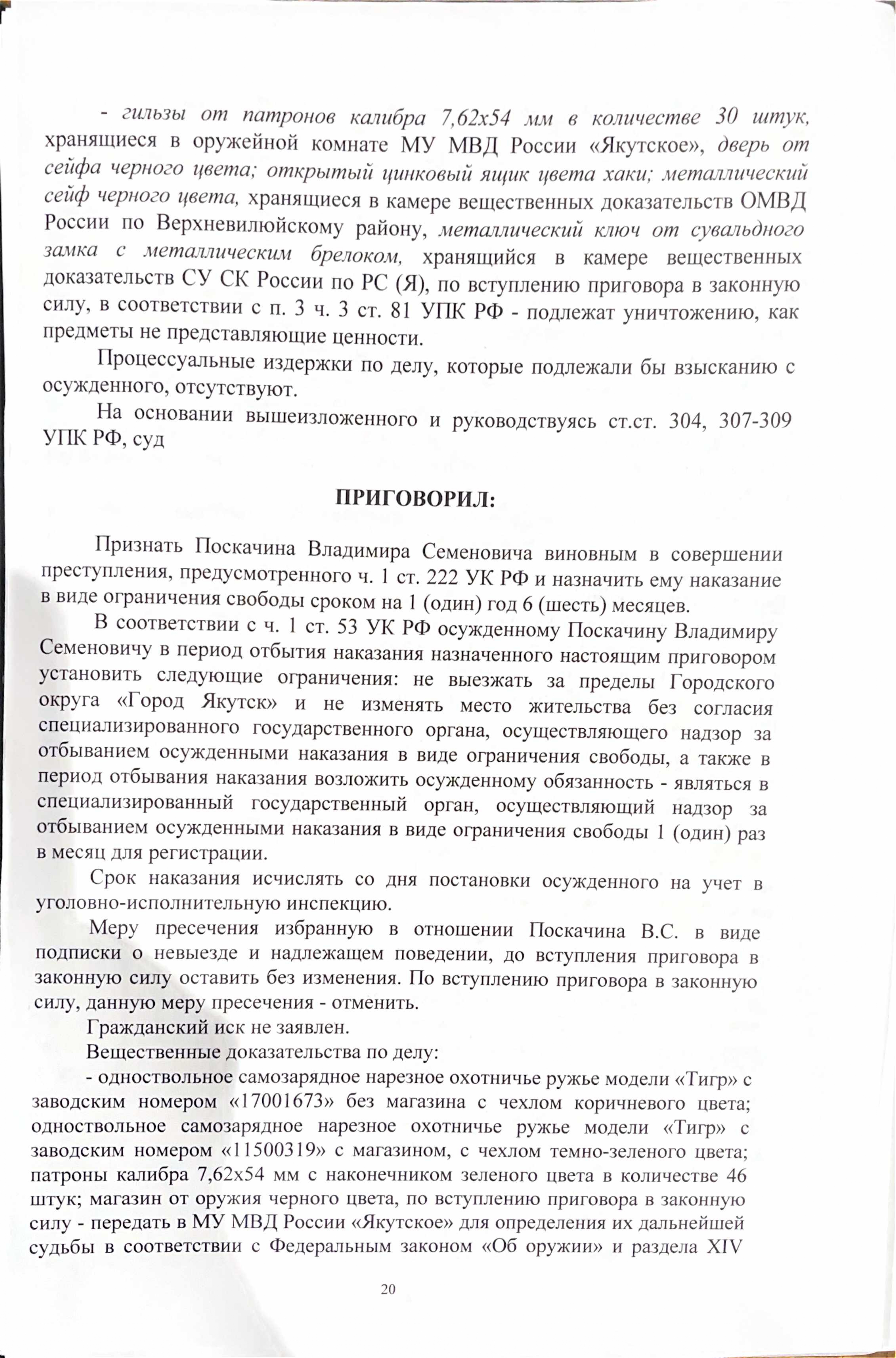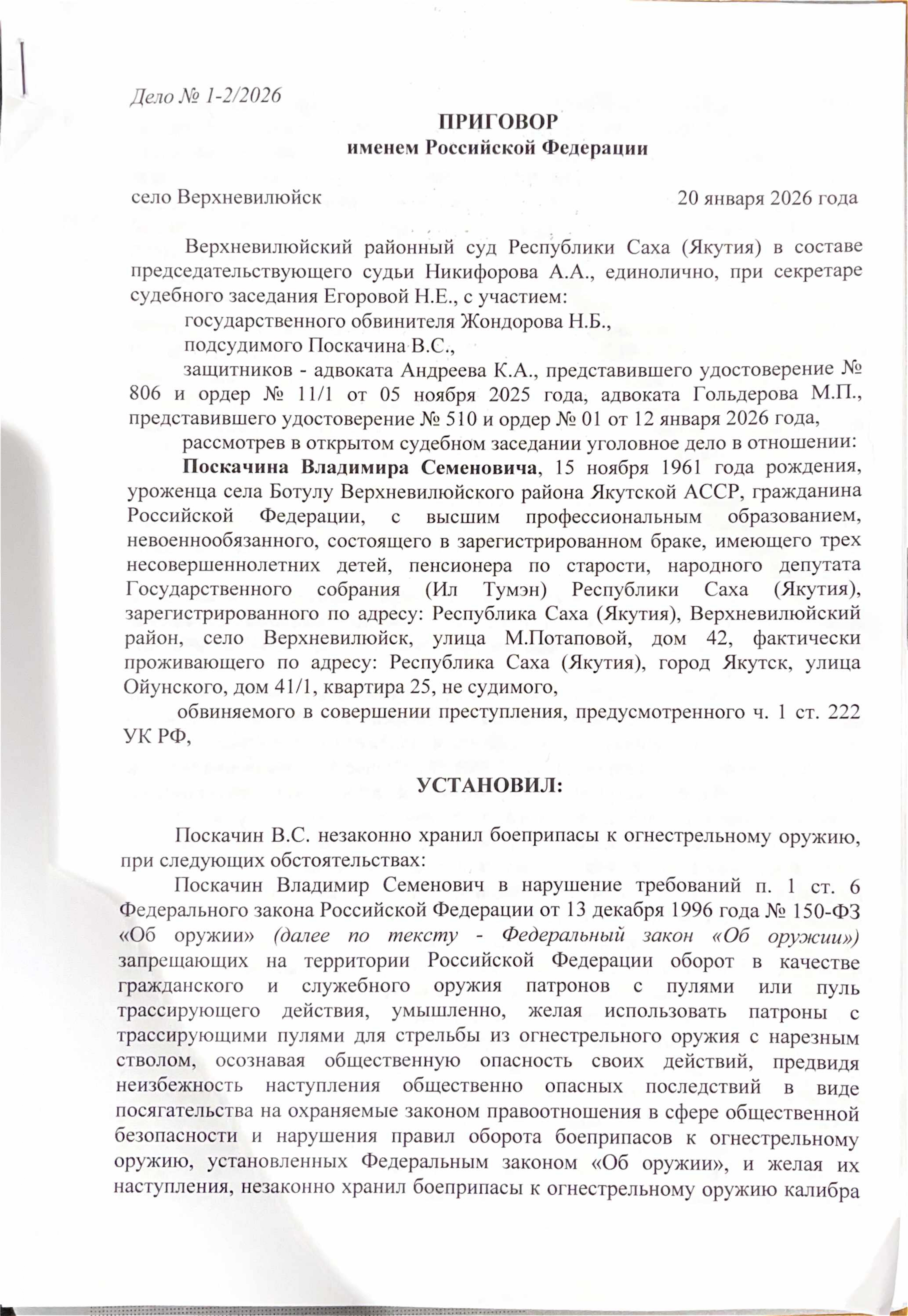 20 января Верхневилюйский районный суд признал народного депутата Якутии Владимира Поскачина виновным в незаконном приобретении и хранении боеприпасов к огнестрельному оружию. Об депутат сообщил в своем блоге.