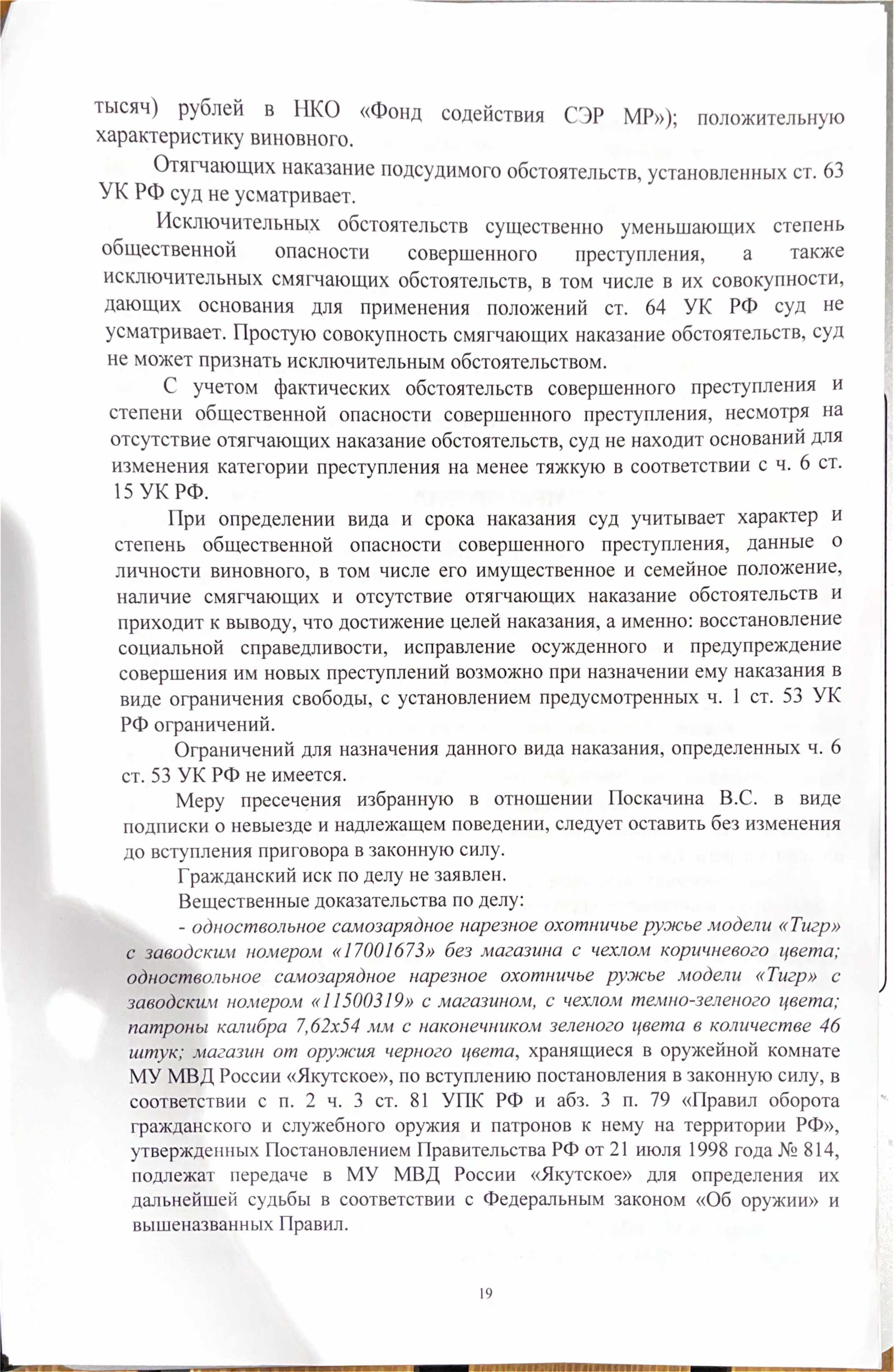 Суд приговорил Владимира Поскачина к 1,5 годам ограничения свободы.
