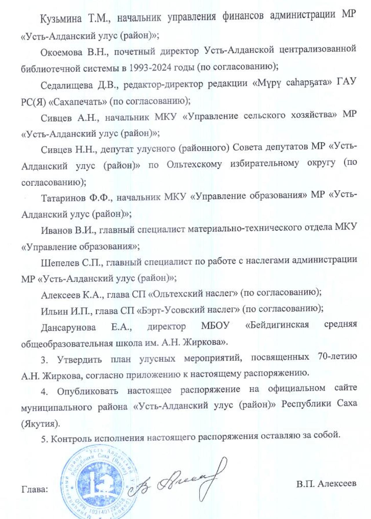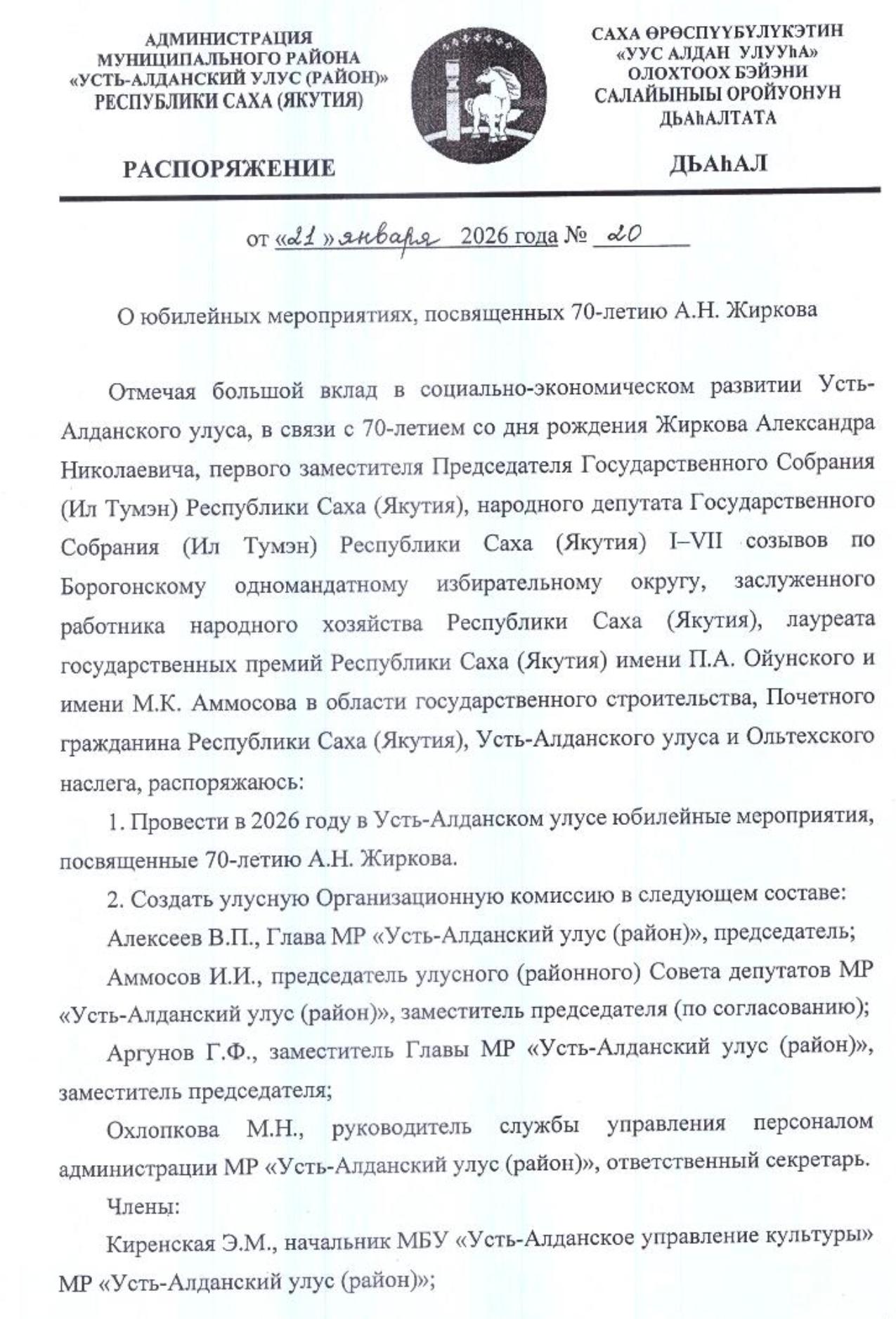 Судя по размаху, готовится не просто юбилей, а народные торжества в честь отца наций межгалактического масштаба. Чтобы никто не забыл, кого и за что поздравлять, глава Усть-Алданского улуса В.П. Алексеев 21 января, видимо, отложив все насущные проблемы, создал Улусную оргкомиссию. И не просто комитет, а целый отряд специального назначения из 16 (шестнадцати!) чиновников. Их благородная миссия — убедиться, что ни одна корова в наслеге не пройдет мимо портрета юбиляра, а каждый школьник выучит хронику его избирательных кампаний наизусть.