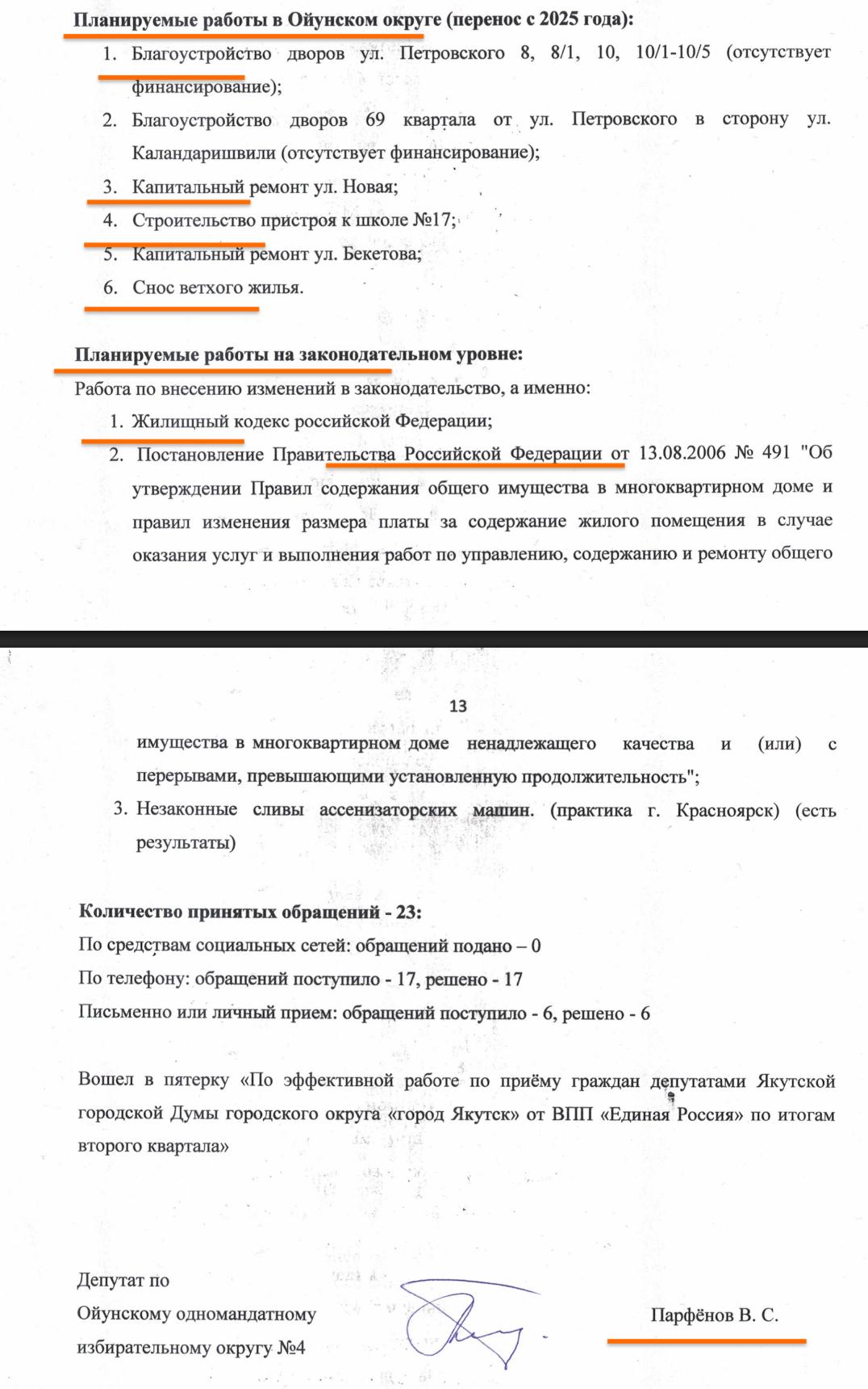 Судя по отчёту, перед нами не просто народный избранник, а настоящий человек-оркестр. Он и законодатель федерального уровня, и прораб, и дорожный рабочий, и сносчик ветхих зданий. Остаётся пожелать ему успехов в совмещении стольких специальностей.