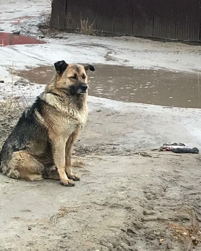 Сергеляхское шоссе, очень грустная собака и 3 трупика щенков.