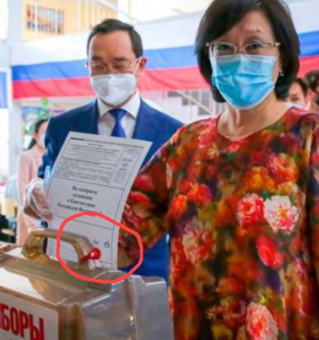 В якутских пабликах появились фотографии известных якутян, принявших участие в голосовании по поправкам в Конституцию. В том числе было опубликовано фото мэра Якутска Сарданы Авксентьевой, на бюллетене которой поставлена галочка в графе "За". То есть мэр проголосовала якобы за поправки. Это видно при увеличении фотографии.