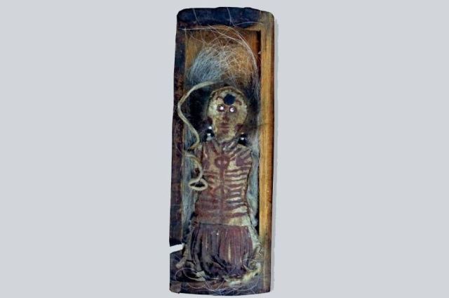 История этого экспоната весьма интересная и местами пугающая. В 1937 г. в Западно-Кангаласском улусе краеведами В.Н. Дмитриевым и И.Ф. Макаровым (председатель колхоза им. Х.П. Шараборина) было найдено захоронение куклы.